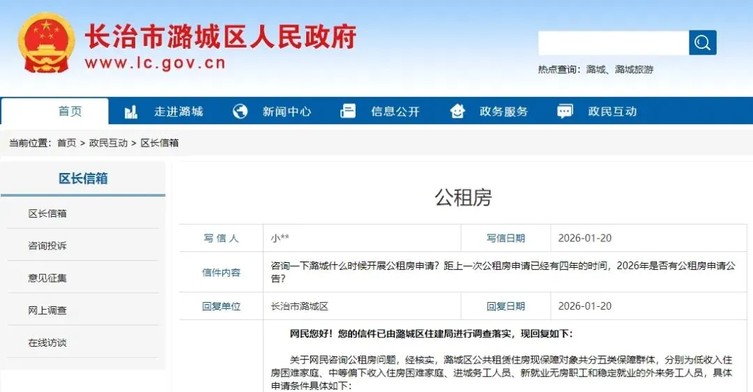 以上情况如有不妥,敬请当事人反馈,也可直接咨询潞城区住建局,联系电话:0355—6762374。