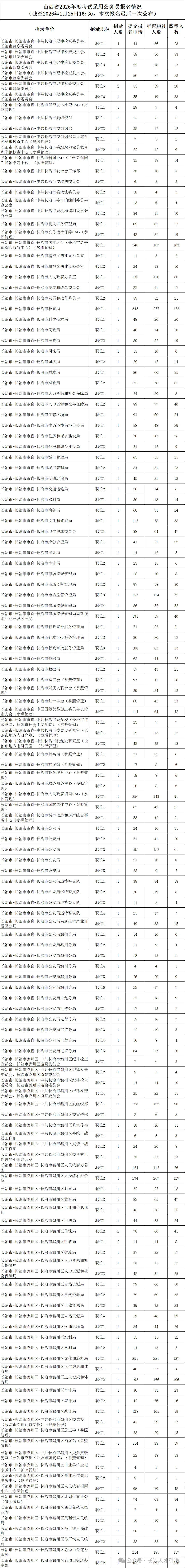 长治2026年考试录用公务员已报名 21156人(截至2026年1月25日16:30,本次报名最后一次公布)