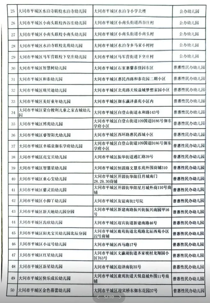 大同173所!幼儿园“白名单”公示