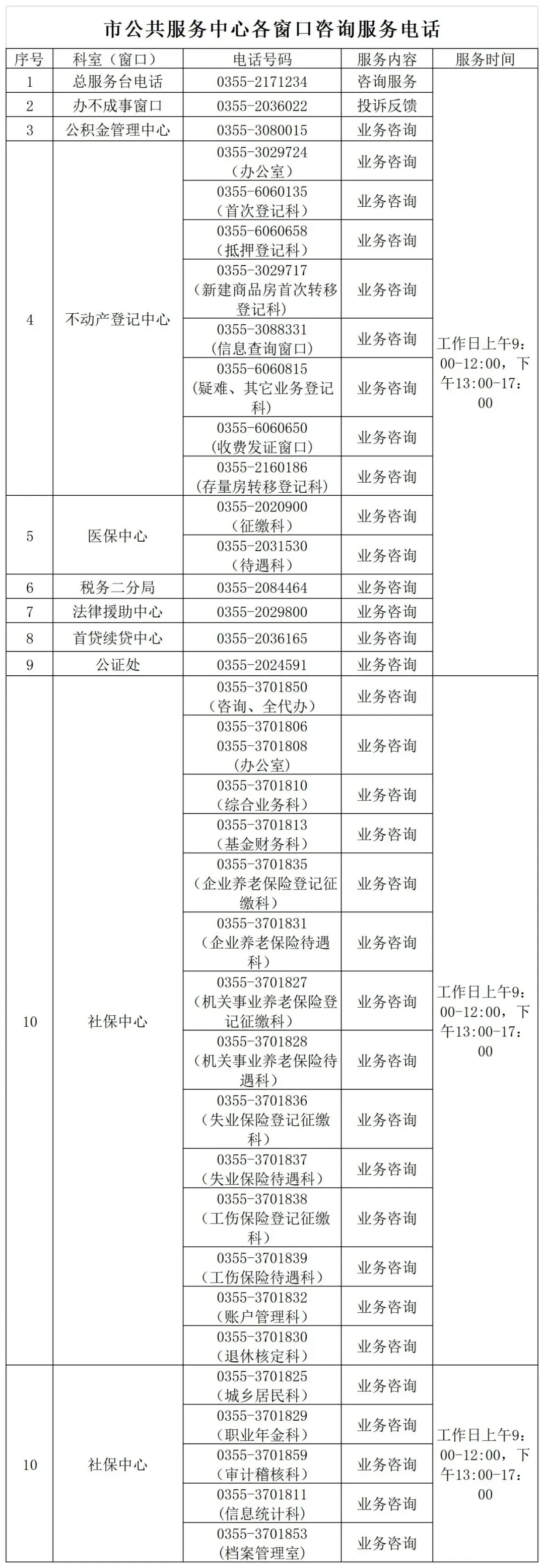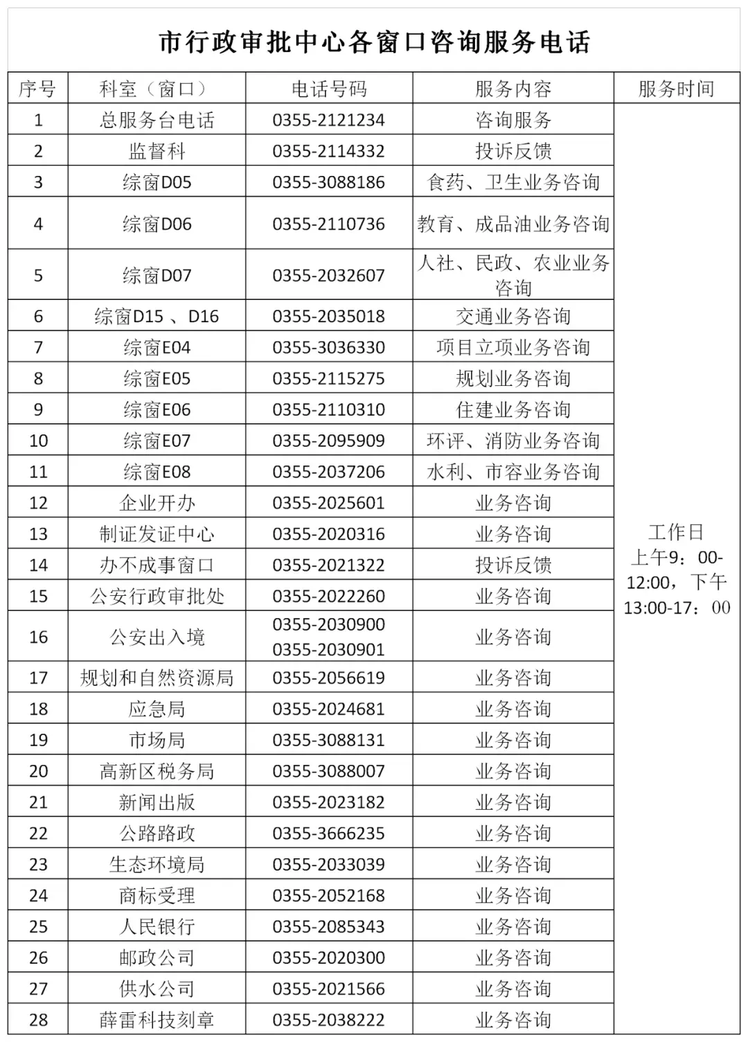 >收藏!长治市政务服务中心公布各窗口服务电话