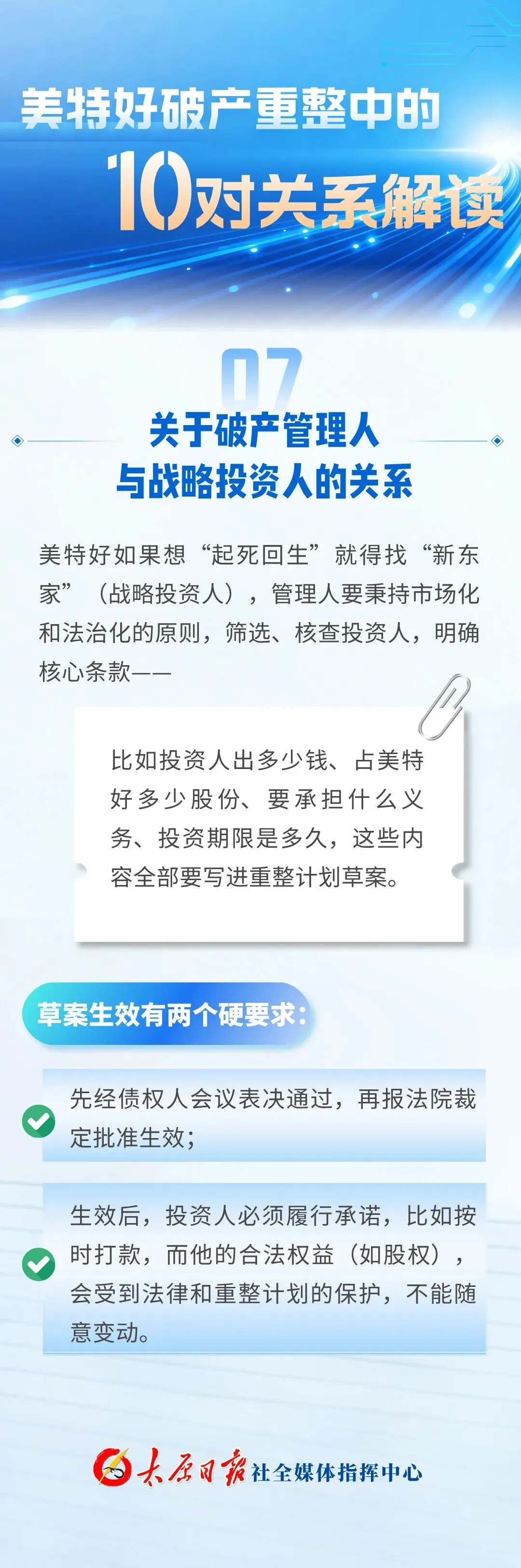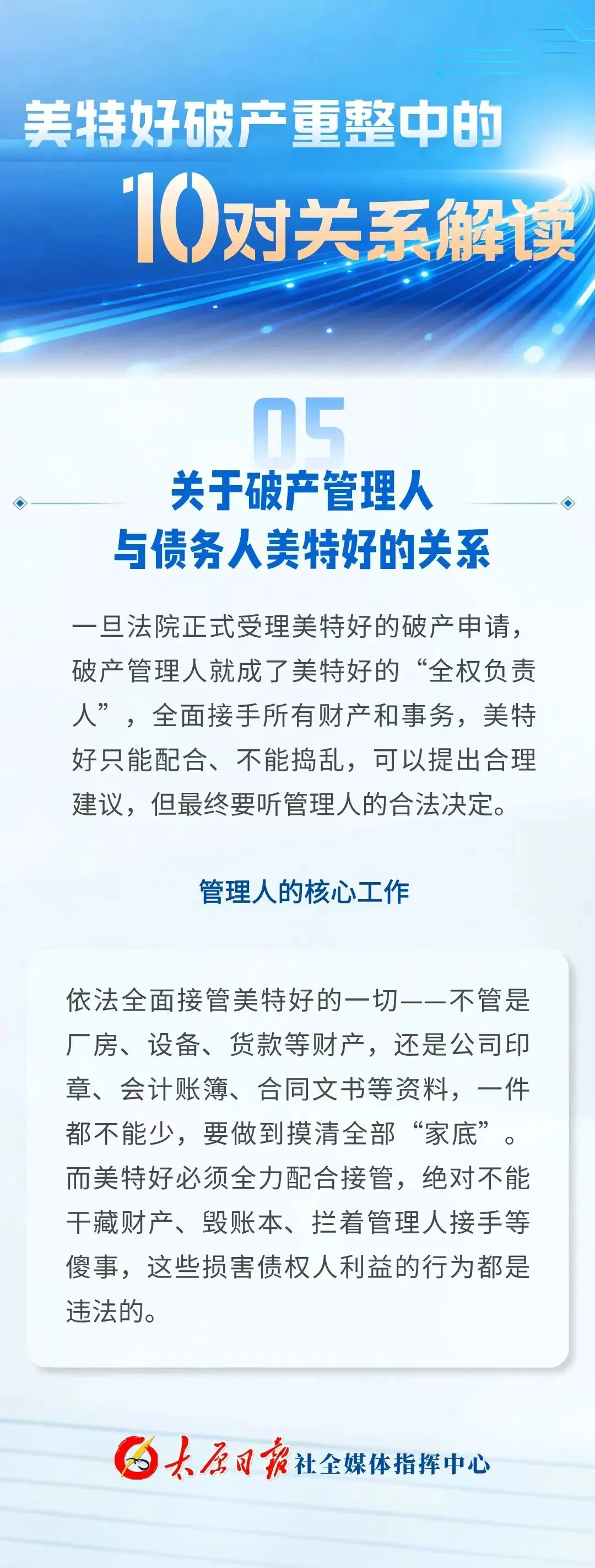 同日,太原市委机关报太原日报发布多条关于此次美特好破产重整的相关内容——