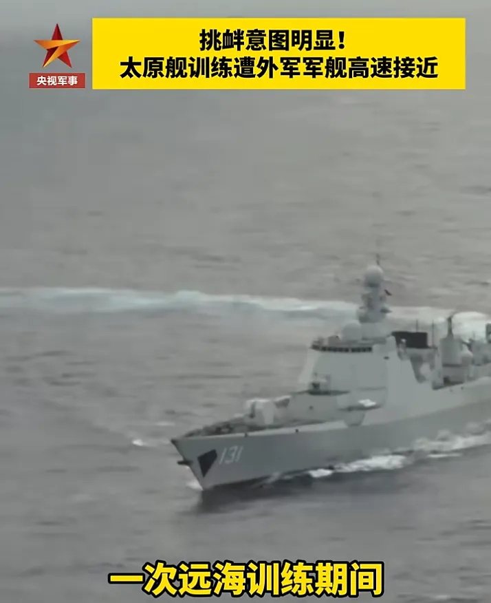 据央视军事报道,一次远海训练期间,海军太原舰按计划在某海域组织航行训练,突然一艘外军军舰从侧方高速接近,挑衅意图明显,形势一度紧张,全舰立即进入战斗状态。