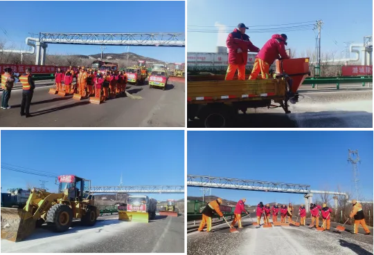 现场指挥组全程统筹调度,及时协调解决作业问题;安全后勤组快速布设警示标志、拉设警示线,实施临时交通管控,引导车辆安全绕行;机械保障组针对大坡路段易结冰特点,精准撒布融雪剂,并安排3辆推雪铲车交替作业清理积雪;人工抢险队伍紧随其后,用推雪铲、扫帚进行精细化清雪除冰;资料收集组同步做好影像记录和数据统计,为后续总结提供支撑。各小组分工明确、高效配合,经过近一小时协同作战,积雪路段恢复畅通。