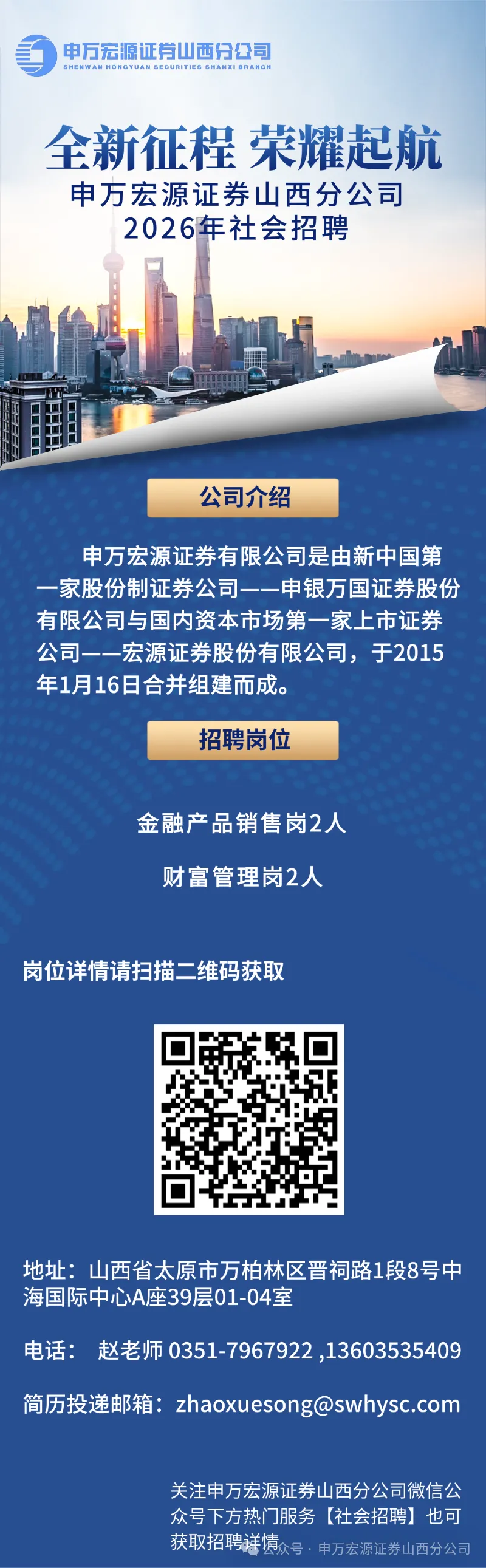 >【太原招聘】申万宏源证券有限公司山西分公司2026年招聘