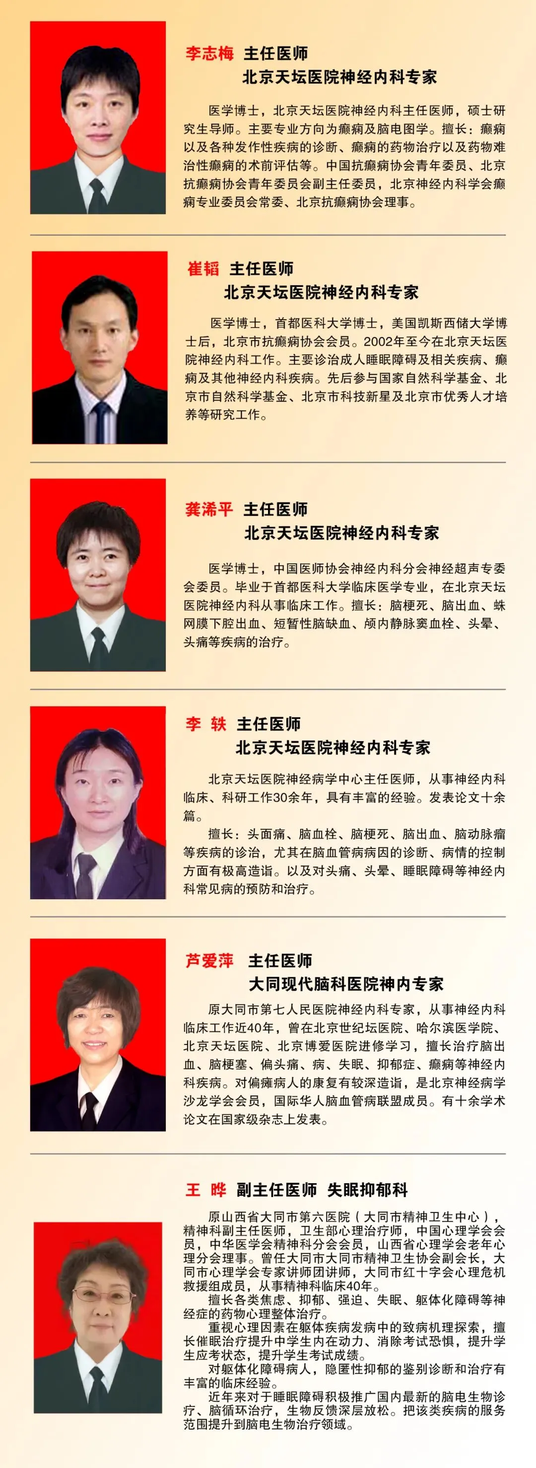 【大同现代脑科医院】特聘北京天坛医院神经内科专家龚浠平(1月31日)出诊我院,请提前咨询预约