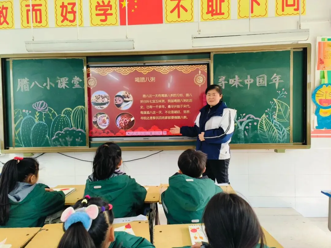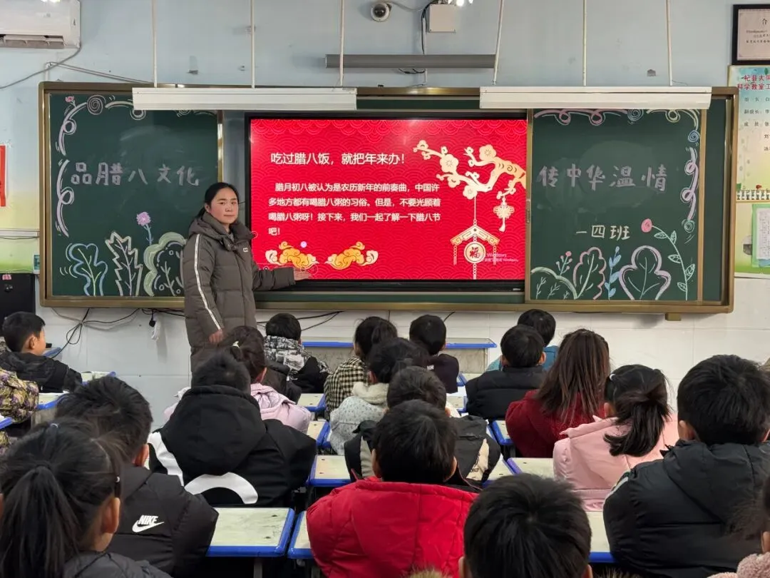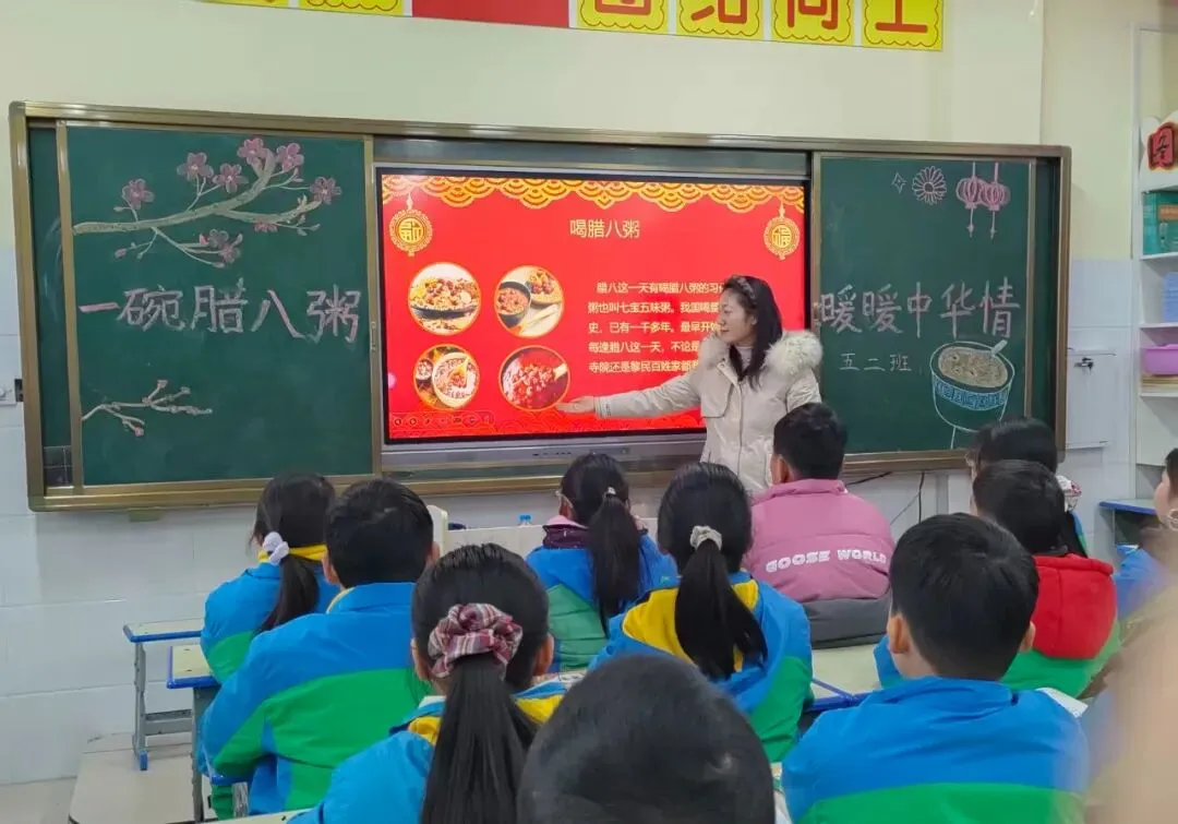 活动中,各班开展了主题鲜明、内容丰富的腊八文化班会。老师通过生动的PPT和趣味动画,为同学们讲解腊八节的由来与习俗,从“腊八粥”的温暖寓意到“腊八蒜”的腌制传统,同学们听得津津有味,在互动中加深了对这一传统节日的理解与认同。