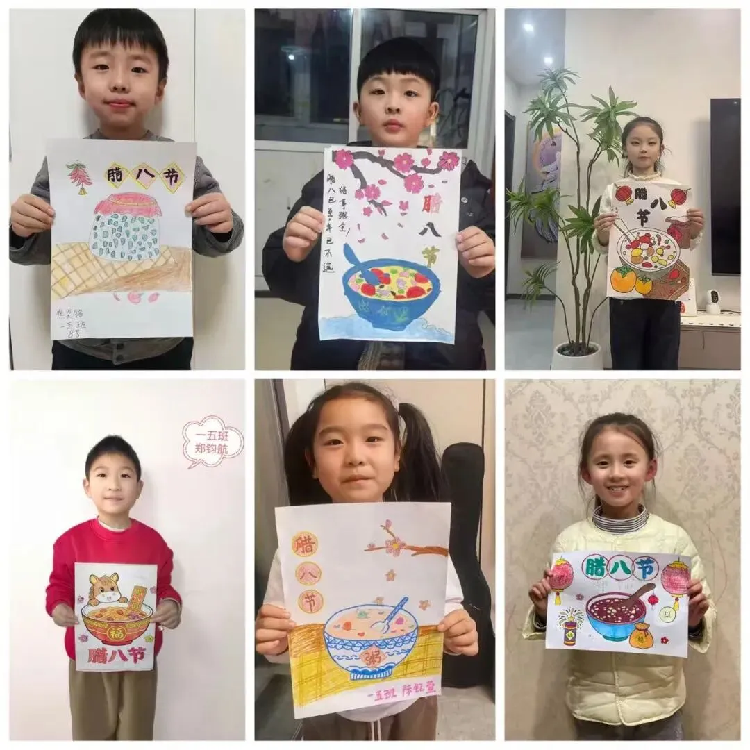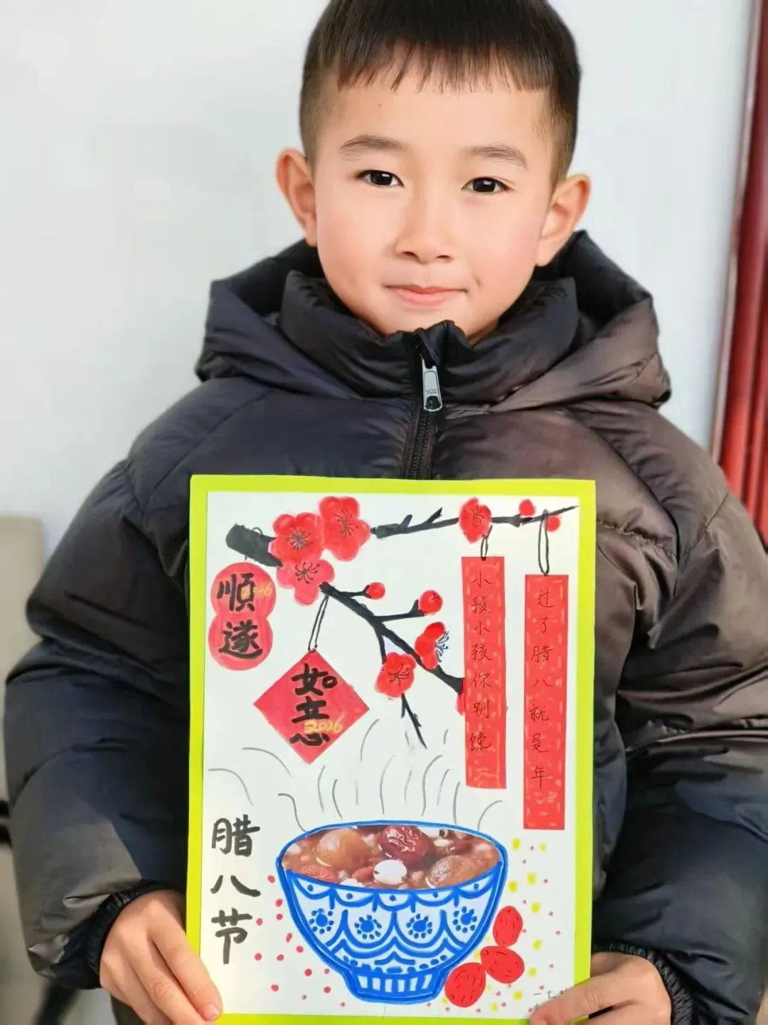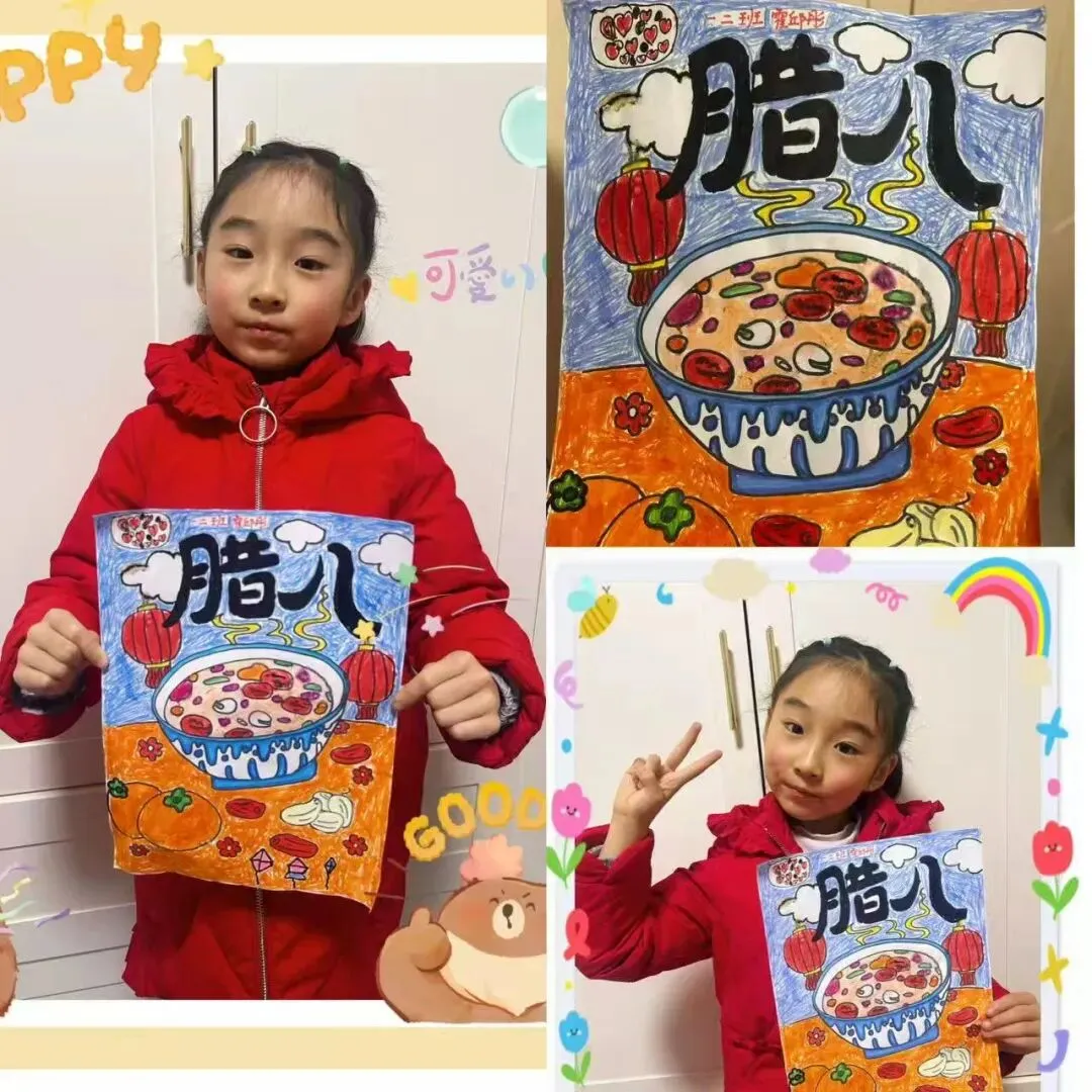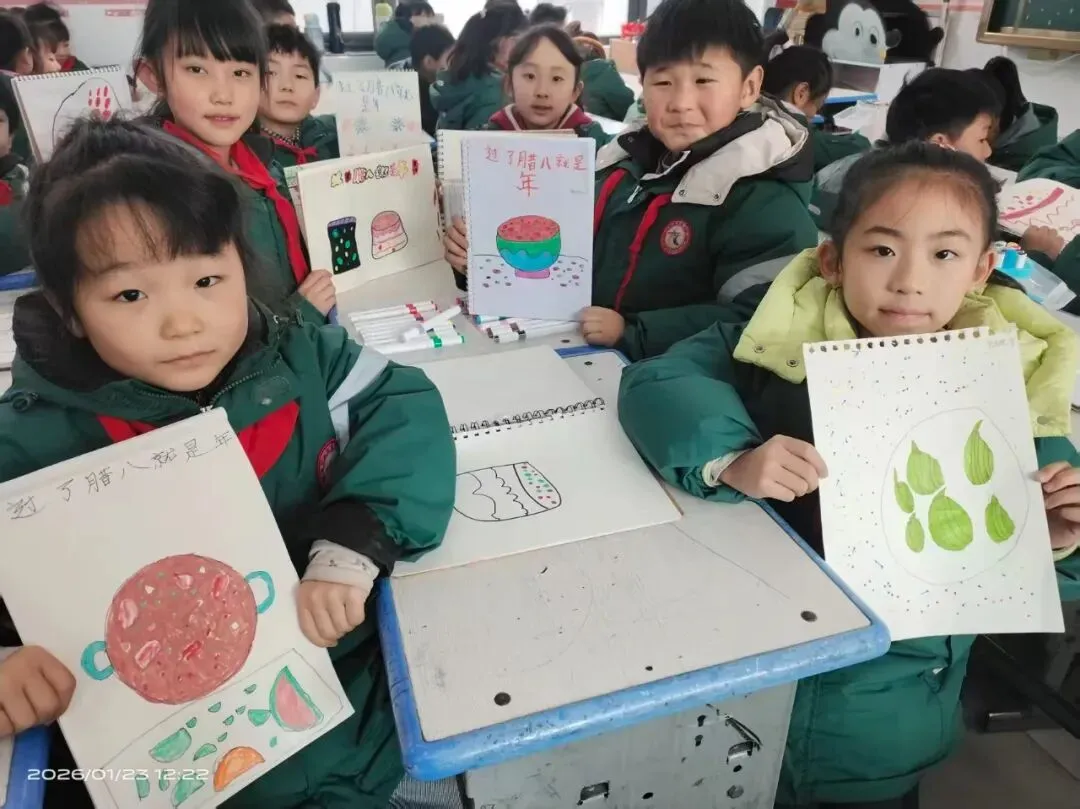 同学们用手中的画笔,描绘出自己心中的腊八节。一幅幅充满童真与想象的画作,有的画着热气腾腾的腊八粥,有的与家人共同描绘腊八的温馨场景,还有的细心勾勒出各种腊八食材。色彩之间,传递的是对传统习俗的感知,更是对腊八节的细腻表达。