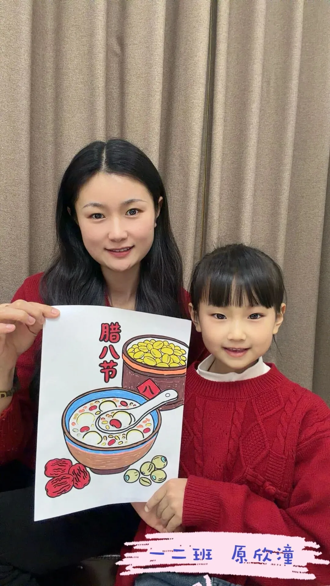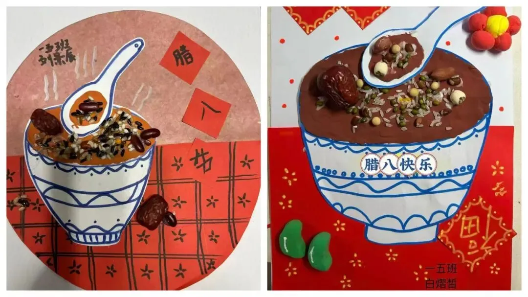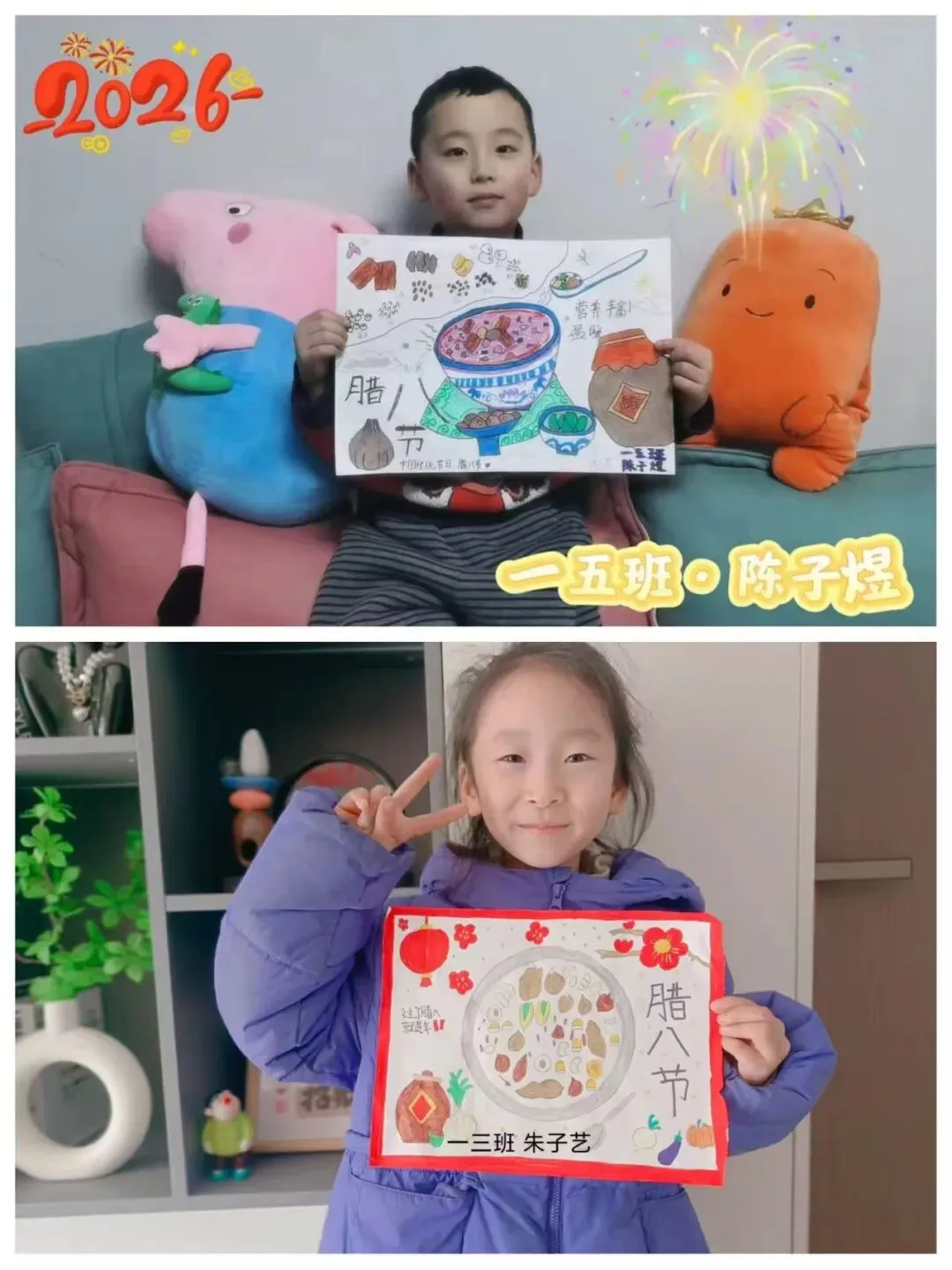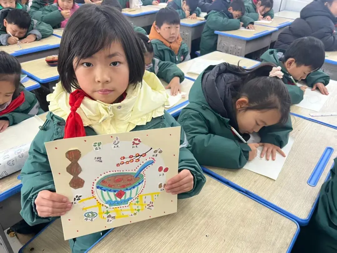 同学们用手中的画笔,描绘出自己心中的腊八节。一幅幅充满童真与想象的画作,有的画着热气腾腾的腊八粥,有的与家人共同描绘腊八的温馨场景,还有的细心勾勒出各种腊八食材。色彩之间,传递的是对传统习俗的感知,更是对腊八节的细腻表达。