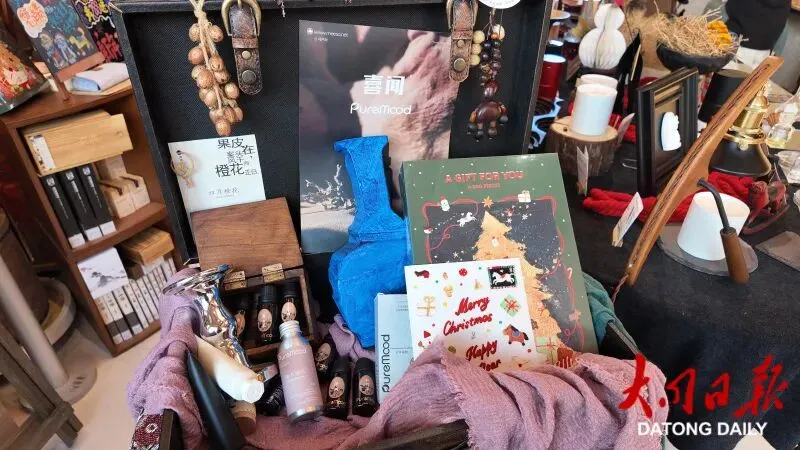“喜闻香薰”负责人庄欣欣解释,选择大同是因为这座城市的人文气息与历史沉淀,而东南邑街区新潮的气质与品牌调性高度契合。合作前,他们在网上征集“你在大同的故事”,留言纷至沓来,不仅有在外游子对家乡的回忆,也有游客对大同的生动印象。通过征集到的灵感,一款名为“大同的风”的定制香薰由此诞生——它以纯植物复方精油调制,试图捕捉古城冬日冷冽的风的意象。“我们想做一款能够代表大同的香气,一闻到这款香气,就能唤醒人们关于这座城市的记忆。”庄欣欣解释道。