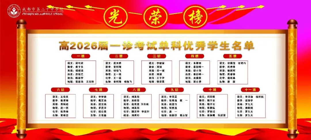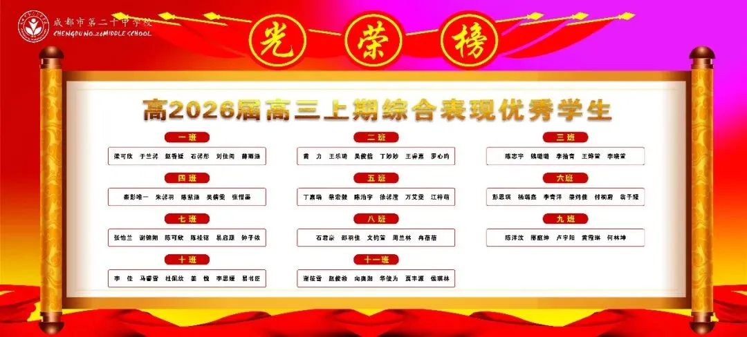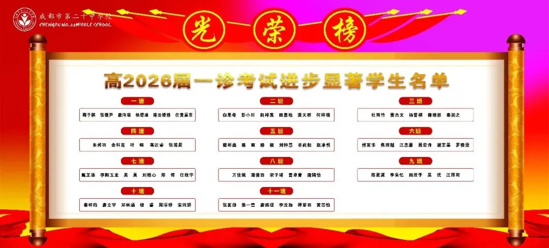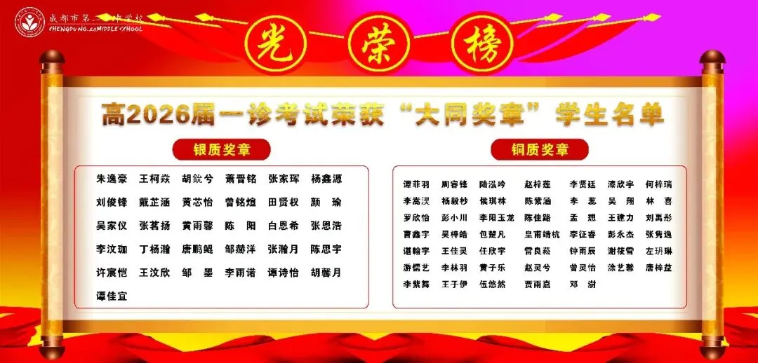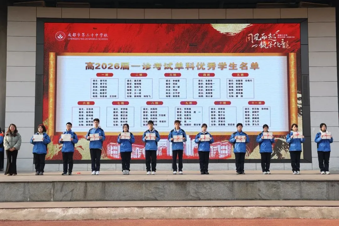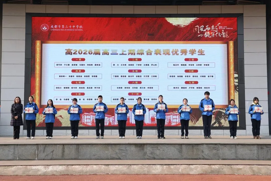 本次大会表彰了在一诊考试及高三上学期表现突出的学子。周子棋、白恩希等62名同学获“进步显著奖”,用努力书写逆袭篇章;梁可欣、黄力等62名同学摘得“综合表现优秀奖”,以稳扎稳打彰显实力;龚天骄、梁可欣、曾柯翔、杨怡飞、蔡晨曦、罗宸瑀、罗九天、游儒艺、陈思宇、杨毅杪、樊云智等75名同学凭借学科深耕,斩获“单科优秀奖”,成为各自领域的标杆。