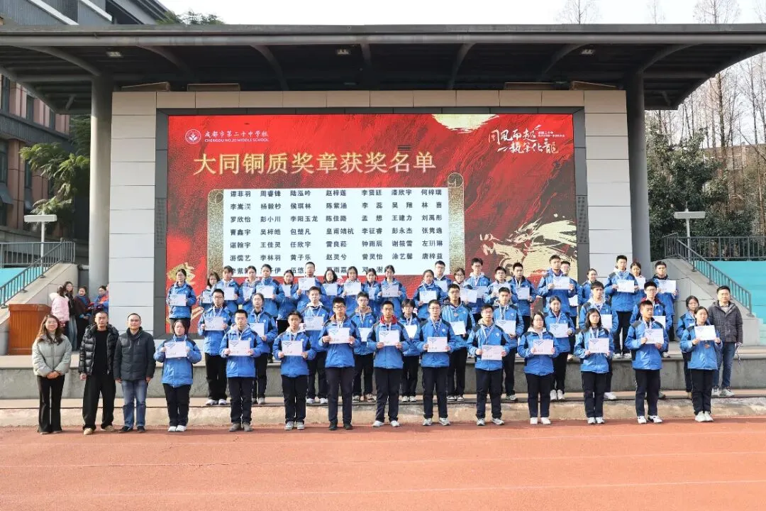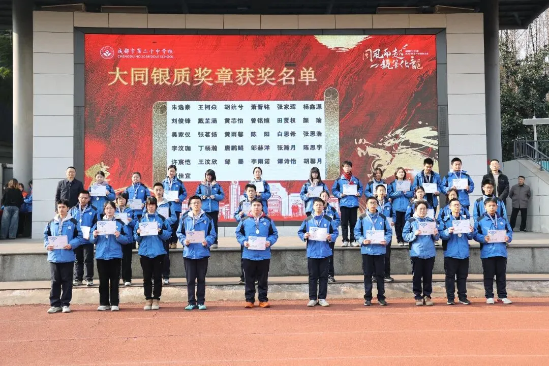 学校特色荣誉“大同奖章”同步颁发:谭菲羽、左玬琳等47名同学获大同铜质奖章,朱逸豪、张瀚月等31名同学获大同银质奖章,王一诺、罗闻悦等21名同学荣膺大同金质奖章。他们以品学兼优诠释“大爱”初心,尽显二十中学子的格局与担当。