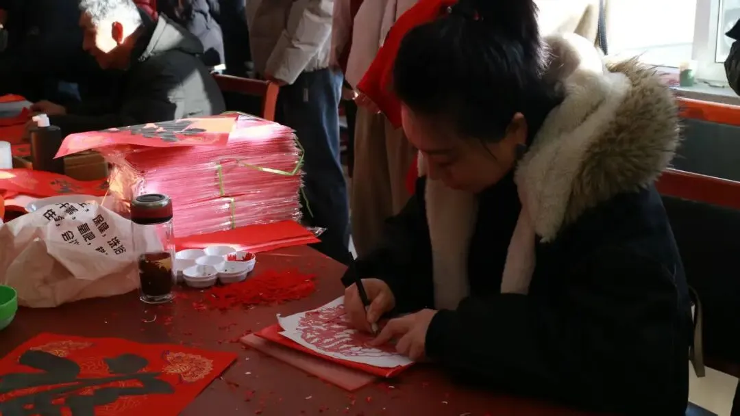 “无联不成春,有联春更浓”。活动现场特邀大同古城民俗馆馆长赵佃玺及多位书法专家现场献艺,笔墨翻飞间,一幅幅寓意吉祥的春联、一个个饱满圆润的“福”字跃然红纸上。红纸铺展、墨香四溢,书法爱好者们以笔为媒,将对新春的期盼、对美好生活的祝愿融入笔墨丹青之中。现场群众有序排队,领取属于自己的专属春联,脸上洋溢着幸福的笑容。手写春联不仅传承了中华传统年俗文化,更为节日增添了浓厚的文化气息,让群众在笔墨书香中感受中华优秀传统文化的博大精深。