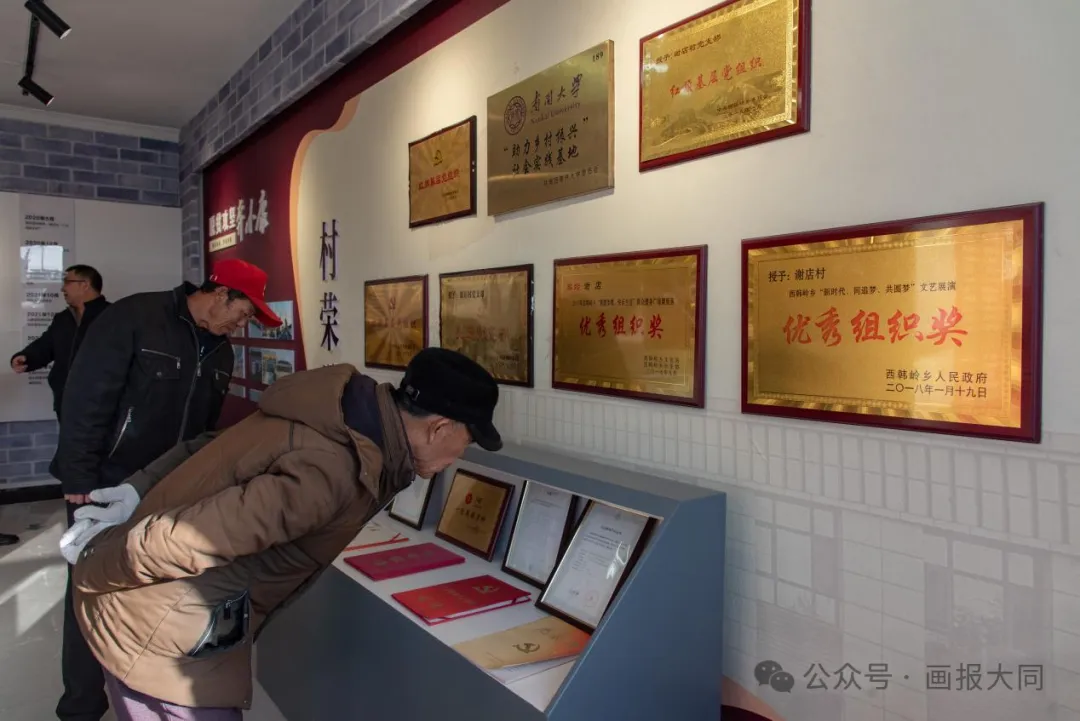 “民生变迁”展区则成了村民感受幸福的“时光机”。展墙上,老照片里泥泞的土路与如今硬化亮化的街巷形成鲜明对比。“以前冬天取暖,一个月烧300多块钱的煤,房子还不暖和,现在实施了全村住房外墙保温工程,完成2万平米沿街及路边住房外墙加附保温层和涂料喷层,还实施了煤改电。”村民张和指着展区里的农房改造模型说,“馆里还放着203路公交的线路图,现在出门就能坐公交去市区,村里有医务室、日间照料中心,我老伴行动不便,每天去照料中心吃饭,荤素搭配,比家里还方便!”从残垣断壁改造到雨污排放工程,从“颐养之家”到健身广场,记忆馆用实物、照片、文字,全景呈现了谢店村“住得暖、行得畅、过得安”的民生新貌。