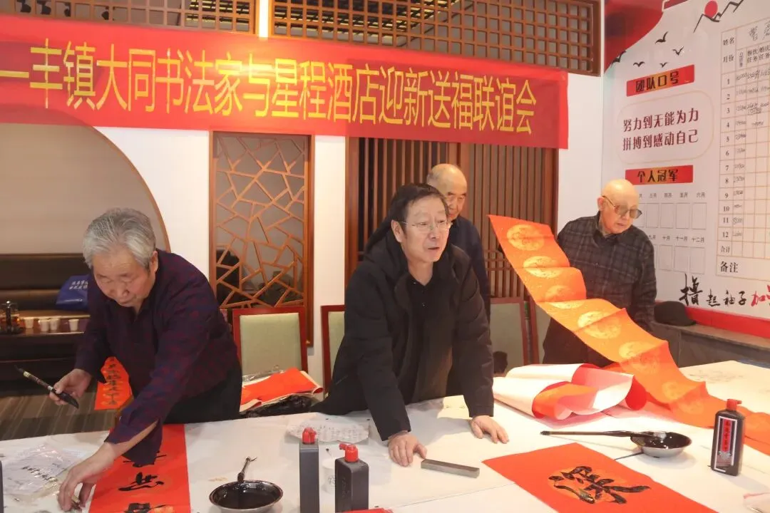 1月26日上午,大同星程酒店内墨香四溢,来自丰镇和大同两地的书法家们齐聚一堂,共同参加“翰墨迎春,情暖两地”迎春送福活动。这场别开生面的文化交流不仅传递着新春的美好祝福,也续写着两地深厚的人文情谊。