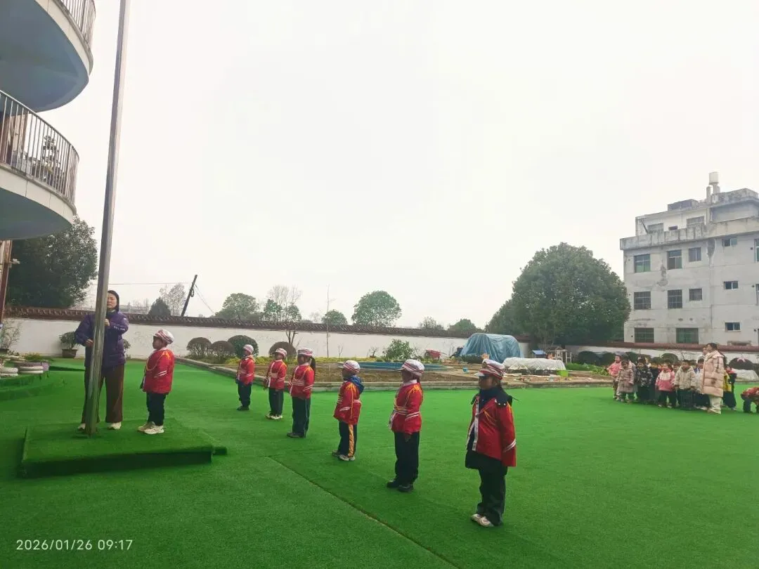 岁末迎新,暖意融融。为了让孩子感受新年的氛围,了解更多的寒假安全知识,助力孩子们平安快乐度过假期,2026年1月26日,我园举行了以“快乐寒假,安全第一”为主题的升旗仪式。 本周主持人:高念一