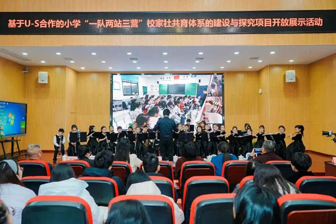 作为长沙市基础教育综合改革实验校,长沙市大同星沙小学以与高校合作为依托、以“一队两站三营”为载体,积极探索校家社共育体系建设实施路径。项目成果展示中,一个个鲜活的节目如同温暖的教育快照,生动再现了“一队两站三营”共育体系的生长轨迹,充分展现了项目实施以来在学生成长、家校互动等方面的丰硕成果,赢得现场阵阵掌声。