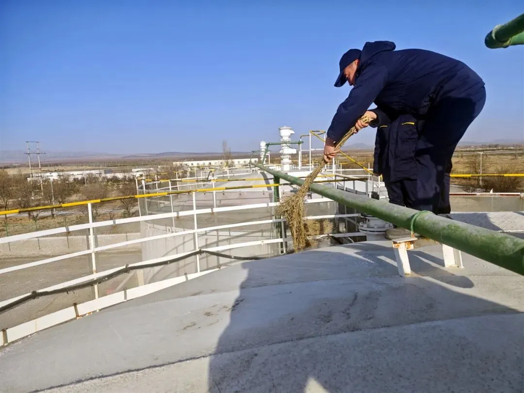 为确保极寒天气下设备设施运行万无一失,供应站组织开展全方位、拉网式安全排查,检查突出重点、覆盖全面:在设备安全方面,着重对储油罐的呼吸阀、阻火器进行功能性检查,防止因积雪冰冻导致堵塞或失效;加强对管线、阀门、法兰连接处的巡查,检查消暖系统保温措施,严防冻裂风险;对加油车、管线车等移动设备的制动系统、气路管路进行专项检查,确保低温环境下性能可靠。在油品质量方面,严守质量生命线,在接收环节严格执行“三查六对”制,逐车检查、取样化验,把好入库关;在储存和发出环节,显著增加对储油罐、加油车油罐的放沉频次和检查力度,密切监控油品中是否出现水分或杂质,坚决杜绝因温度变化导致的水分析出或结冰隐患,确保加注到航空器的每一滴燃油都品质优良。在作业环境方面,对配电间、消防泵房、发油亭等场所的供暖、门窗密封情况进行检查,保障设备运行所需的环境温度;同时,对库区道路、罐区平台、上下台阶等区域的防滑措施进行检查和加固,防止人员滑倒摔伤。
