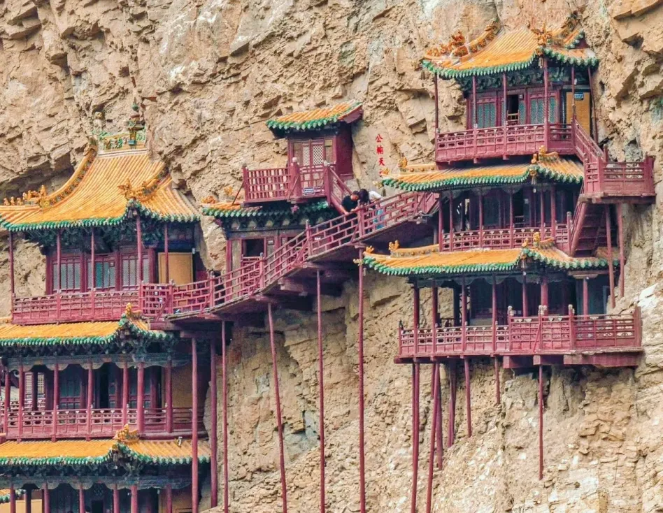 有的队奔悬空寺,挂在恒山脚下的石壁上,北魏起头,明清修补,木梁扎进岩缝里,儒释道同一屋檐,抬头看腿有点发软,心里说真敢修,真能修。