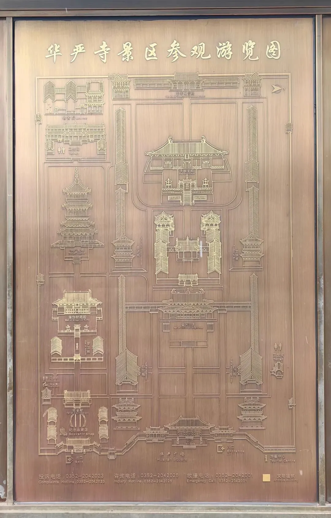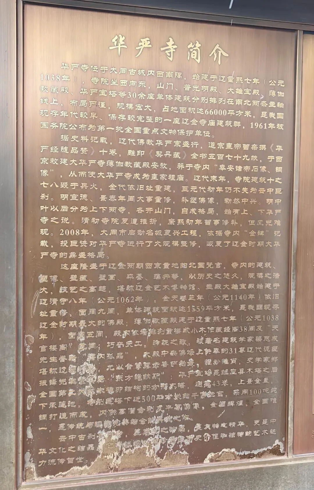 大雄宝殿和薄伽教藏殿是辽金原物,2008~2012年投资4.1亿仿古重建了大部分宫殿。
