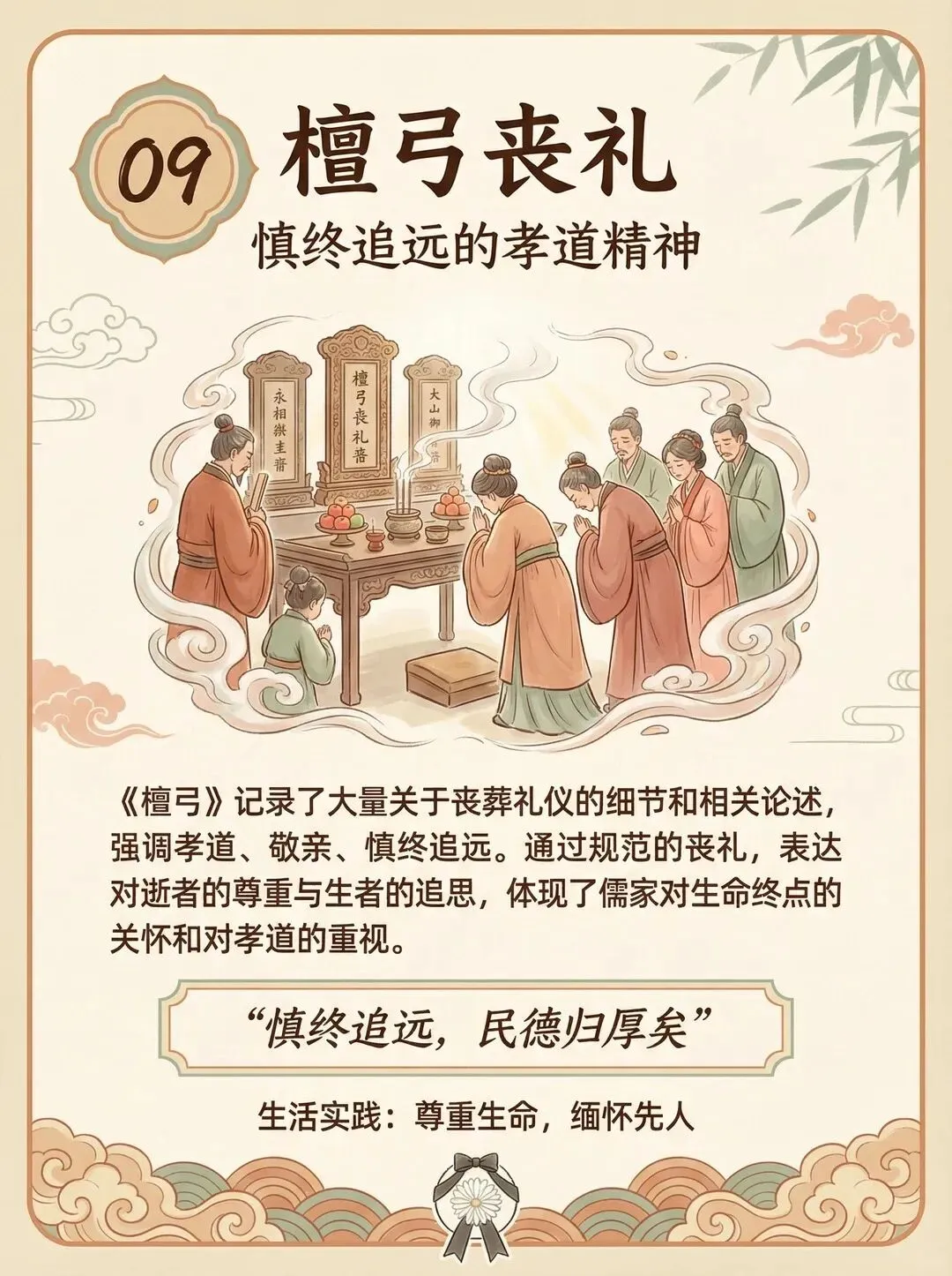 《礼记·檀弓》中记载的丧礼细节尤其令人动容。守丧期间“哀而不伤”的原则,三年丧期的设计,表面是仪式规范,实则是为人类最深的悲痛提供容器与路径。