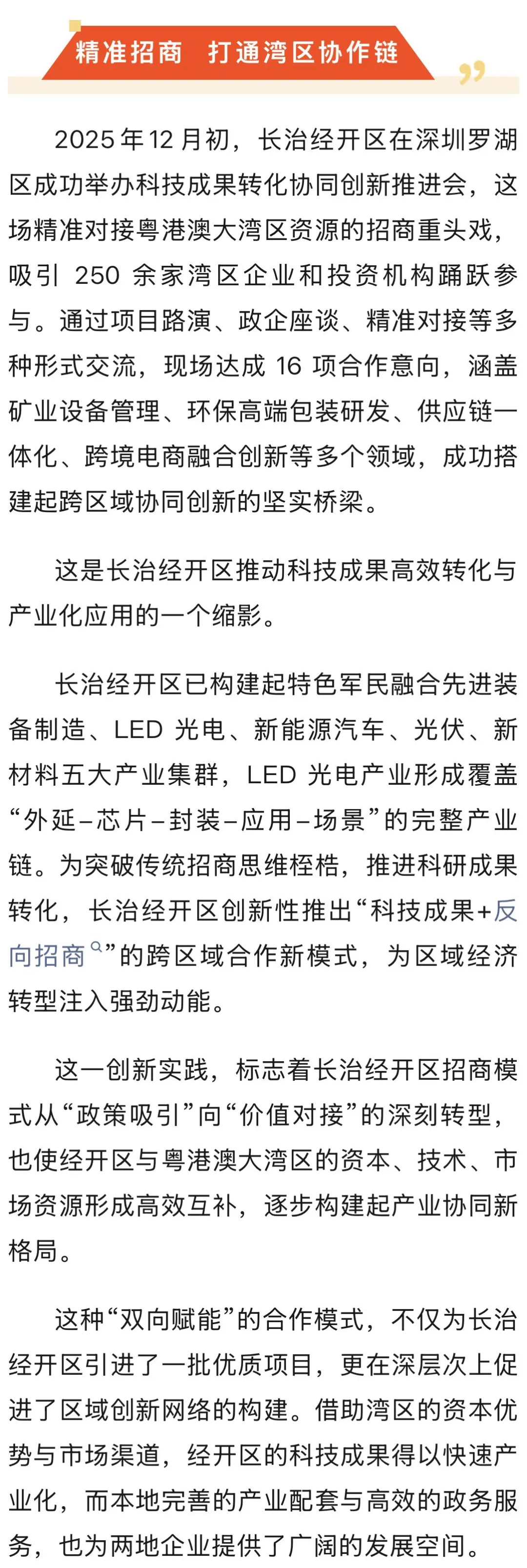 >长治经开区:“转化、链接、集聚”激活产业向新力