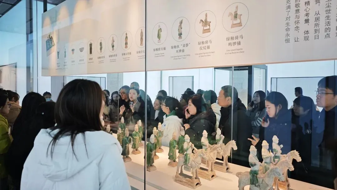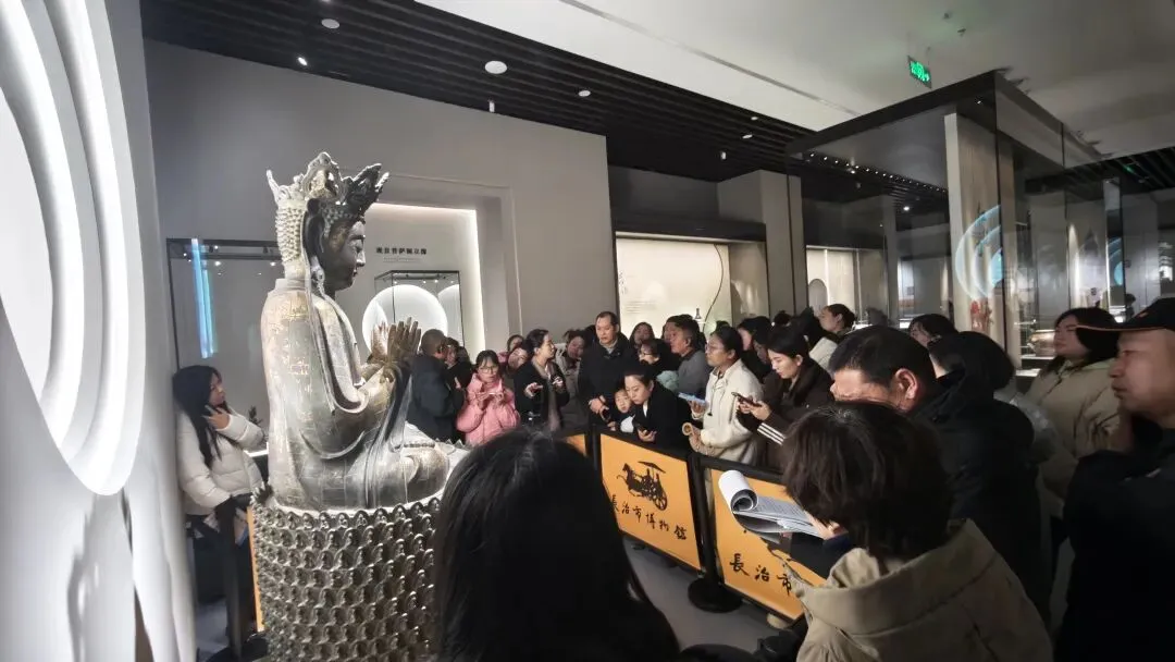 1月25日上午,长治市博物馆正式启动为潞州区导游协会量身打造的定制化培训计划。培训中,博物馆资深讲解老师开展实地教学,对馆藏精品进行深度解读,从春秋扉棱蟠螭纹铜鼎的精湛铸造工艺,到唐三彩抱鸭壶女俑承载的唐代风华,从明珐华罐的镂空绝技,再到辽代鎏金佛像的庄严气韵,全方位引导导游吃透文物背后的历史脉络与文化密码。