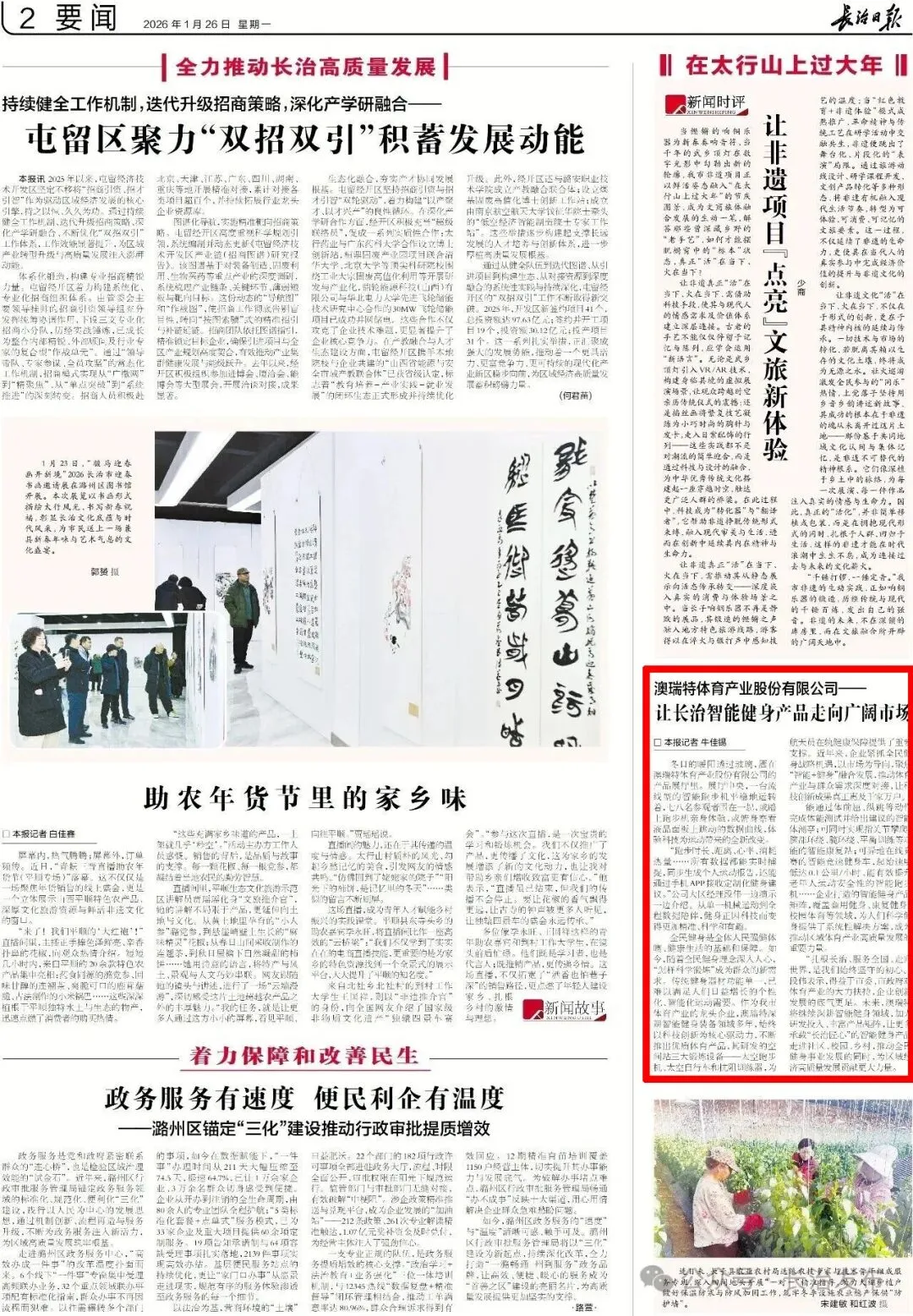 “扎根长治、服务全国、走向世界,是我们始终坚守的初心。”段伟表示,得益于市委、市政府对体育产业的大力扶持,企业创新发展的底气更足。未来,澳瑞特将继续深耕智能健身领域,加大研发投入、丰富产品矩阵,让更多承载“长治匠心”的智能健身产品走进社区、校园、乡村,推动全民健身事业发展的同时,为区域经济高质量发展贡献更大力量。