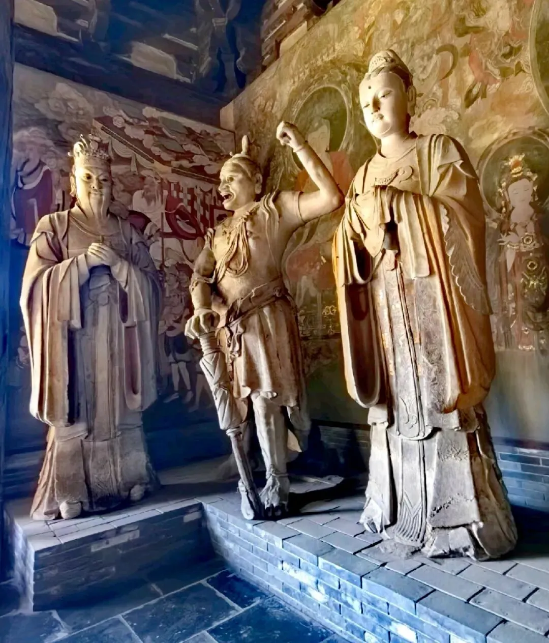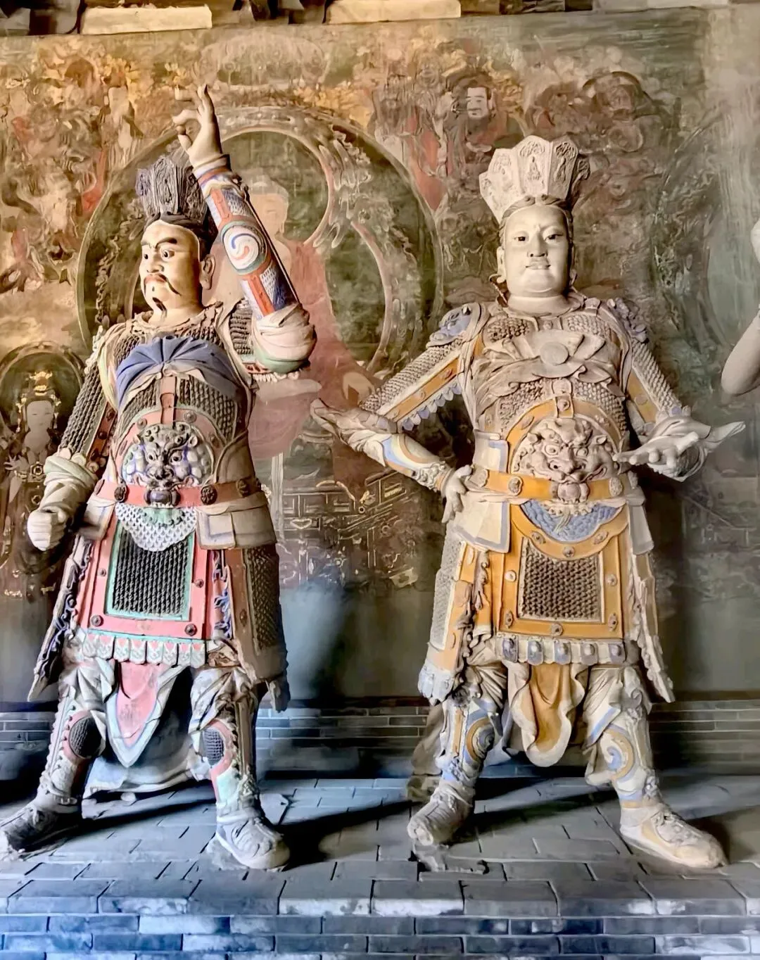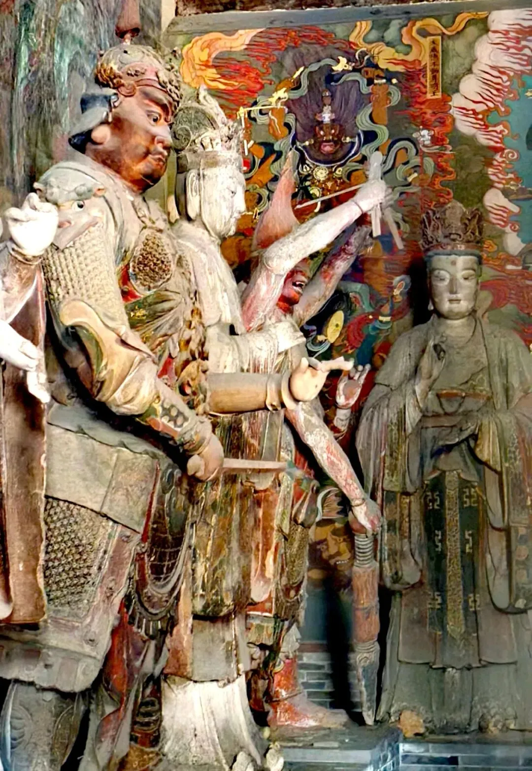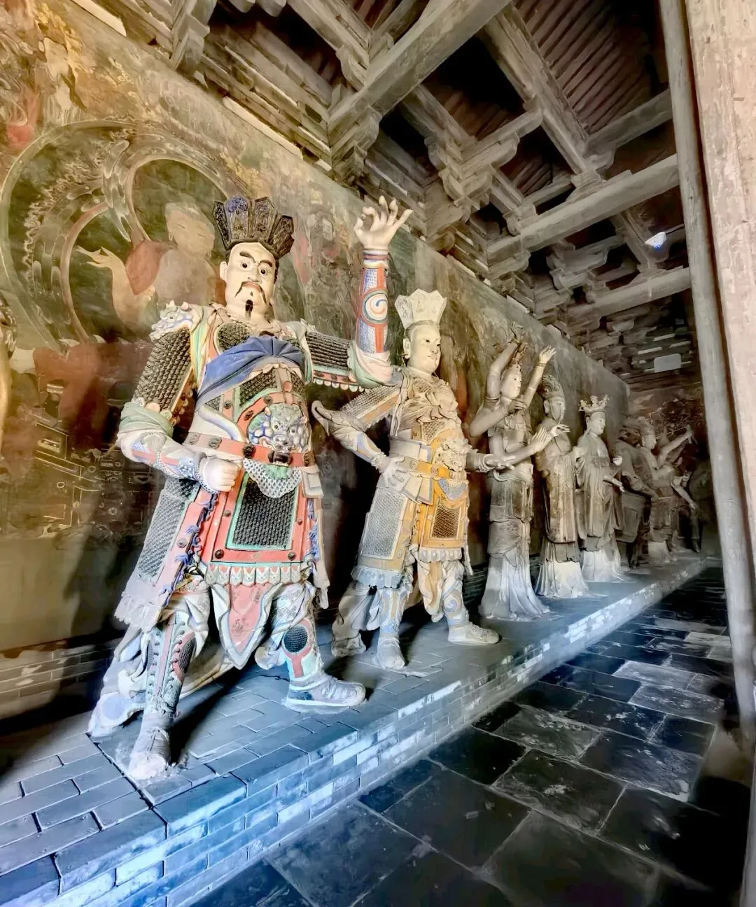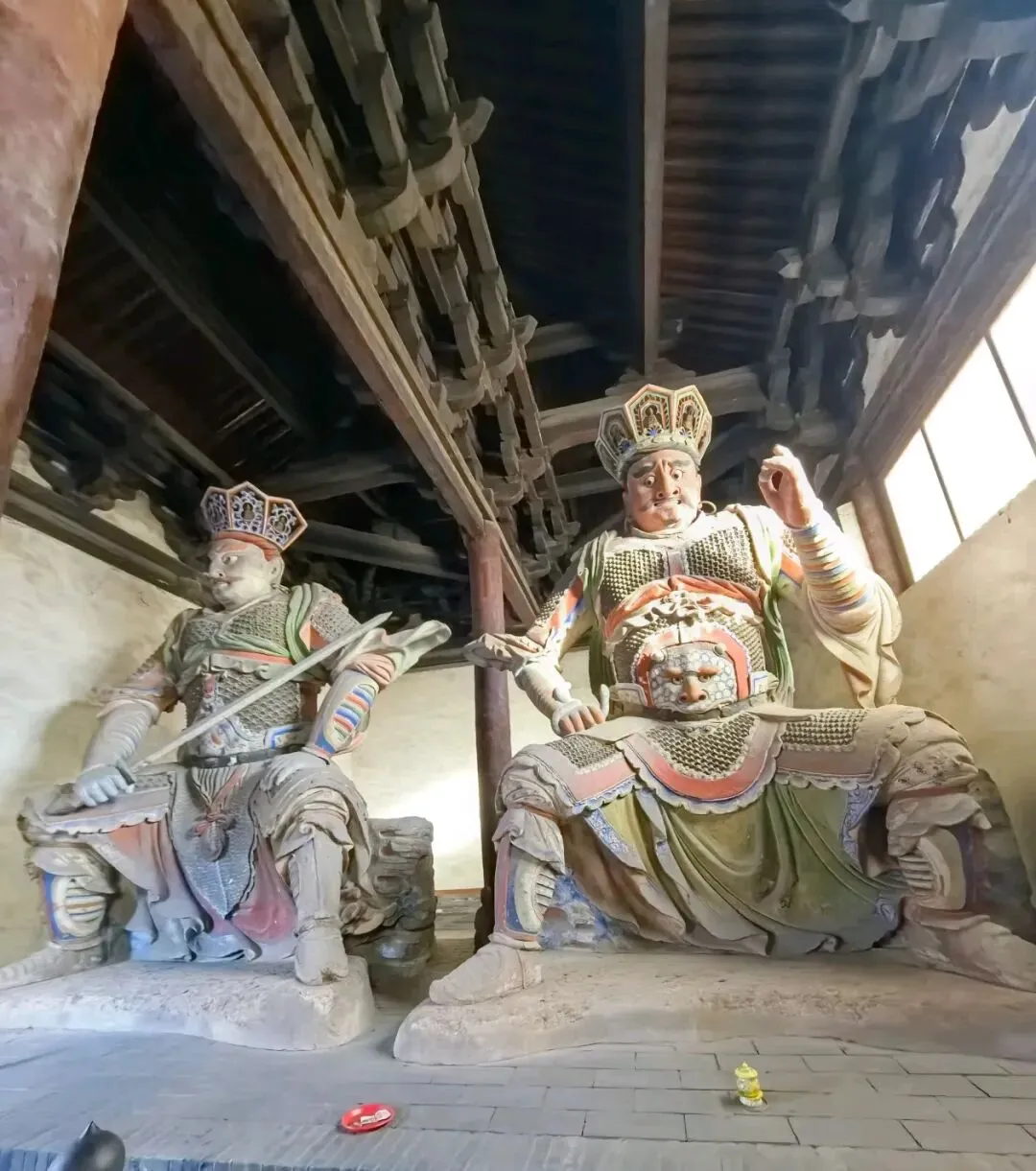 天王殿,现为山门,进深两间,单檐庑殿顶,是中国现存金代时期最大的山门,左右次间有明塑的四大天王塑像,塑像姿态威严,栩栩如生,手持法器,威武霸气。