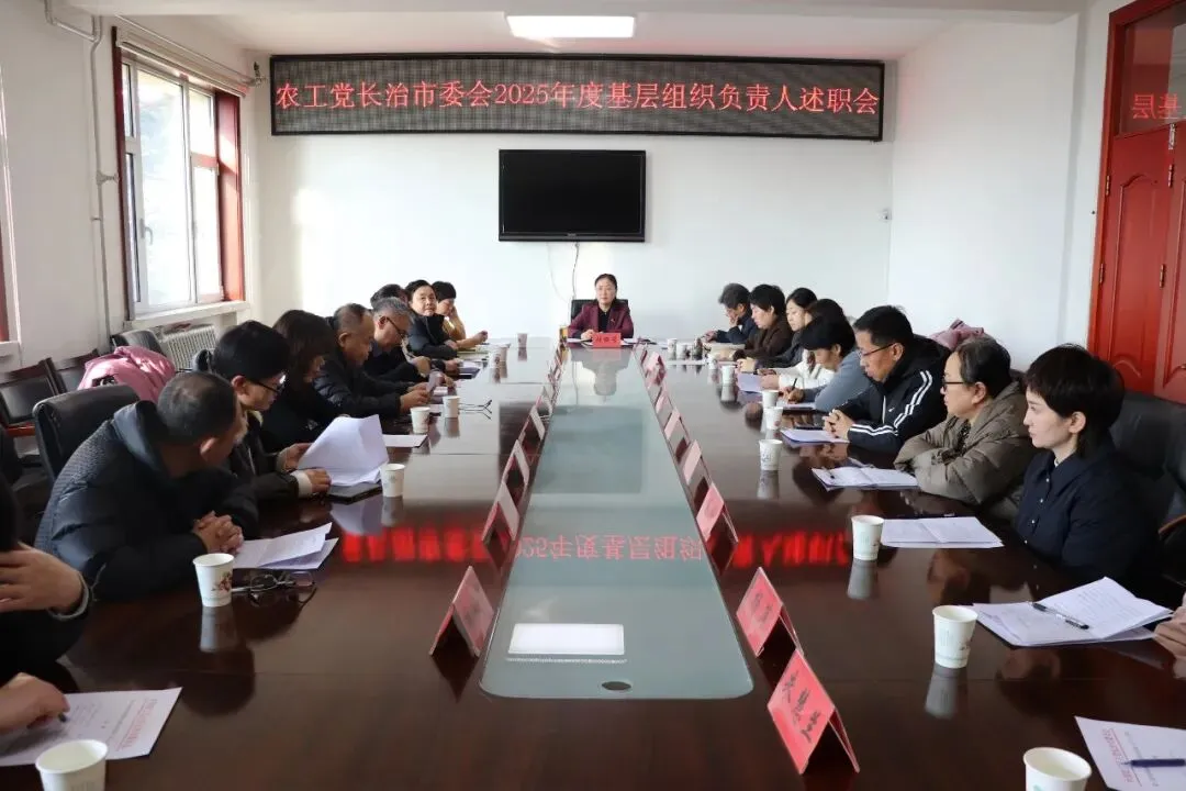 1月24日,农工党长治市委员会召开2025年度基层组织负责人述职会。长治市政协副主席、农工党长治市委会主委张丽芳出席会议并讲话,副主委赵云斌、李红岩、郝晓英、舒玉芬,市委委员及各基层组织负责人共同参加了会议。