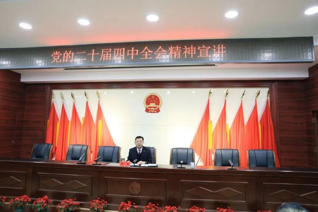为深入学习贯彻党的二十届四中全会精神,准确把握“十五五”规划建议核心要义,切实把全院干警的思想和行动统一到党中央决策部署上来,近日,平城区人民法院党组书记、院长王东为全院干警作党的二十届四中全会精神专题宣讲,紧扣全会精神实质、结合法院工作实际展开系统解读与工作部署。