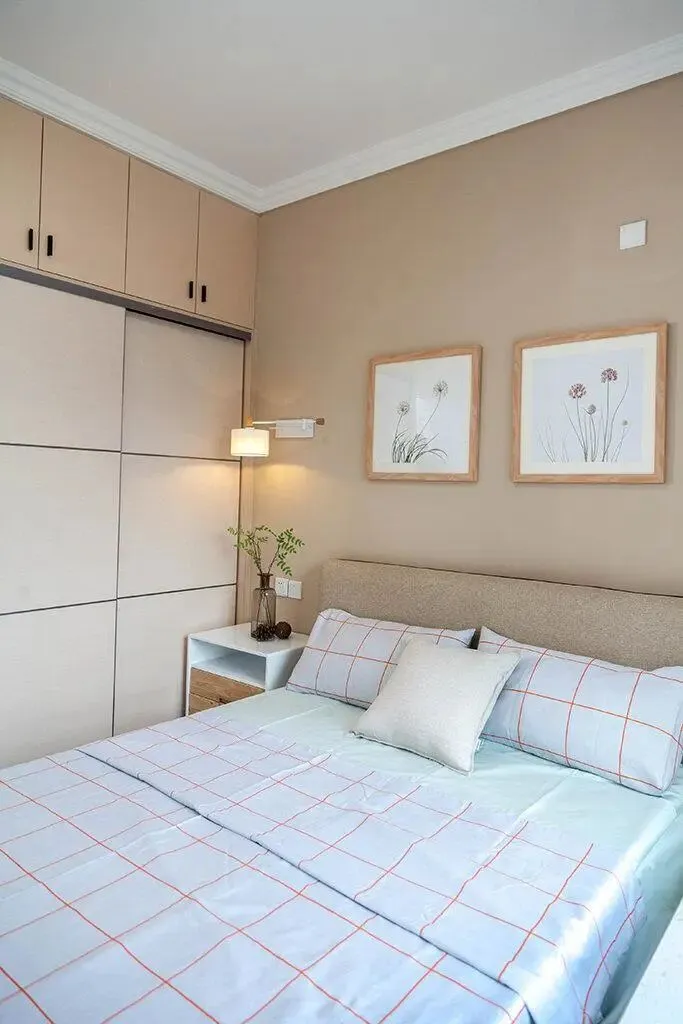 3. 次卧采用“榻榻米+书桌+衣柜”一体化设计,兼顾客房、书房和收纳功能,平时可作为书房使用,家人办公、孩子学习都有专属空间,客人来访时,榻榻米可作为临时客房,衣柜则解决次卧的衣物收纳问题,最大化利用次卧空间。