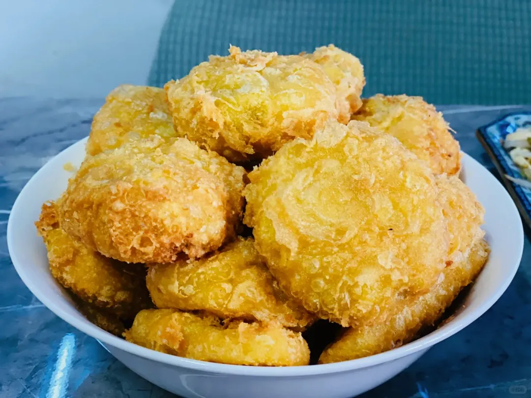 -炸油糕,也叫泡泡油糕,饭店叫法不一,主要有三种: