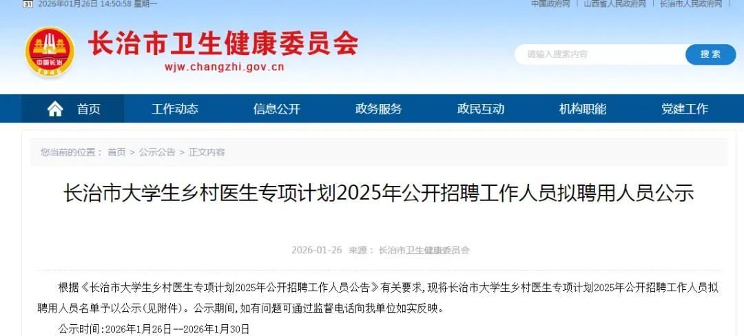 长治市卫生健康委员会发布