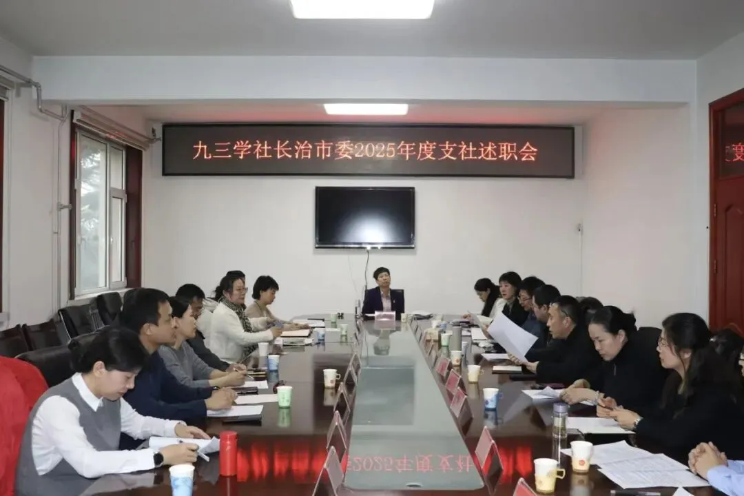 1月25日,九三学社长治市委召开2025年度支社述职会。长治市政协副主席、九三学社长治市委主委邱建英出席会议并讲话。社市委副主委李艳岩、徐云峰、牛晓红,秘书长秦晶参加。各支社负责人会上进行述职。