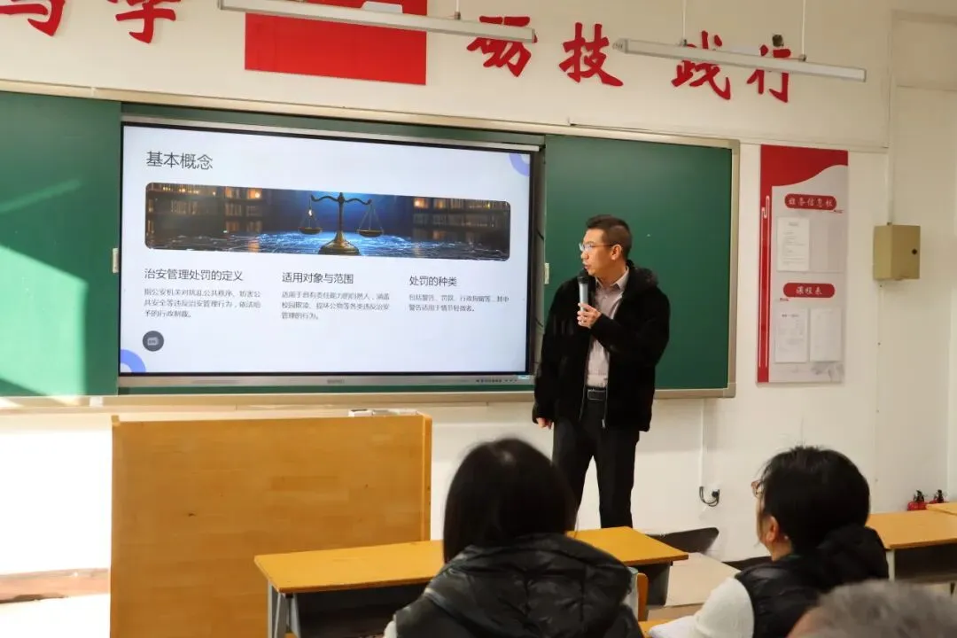 曹律师结合真实案例,用通俗易懂的语言向学生们普及《治安管理处罚法》,针对新法中新增法律知识,违法的后果,承担的责任等问题,通过趣味问答、情景模拟等形式,引导同学们树立法治观念、增强自我保护意识。课堂气氛活跃,学生们在互动中感悟法律的力量,为同学们的成长注入“法治正能量”。
