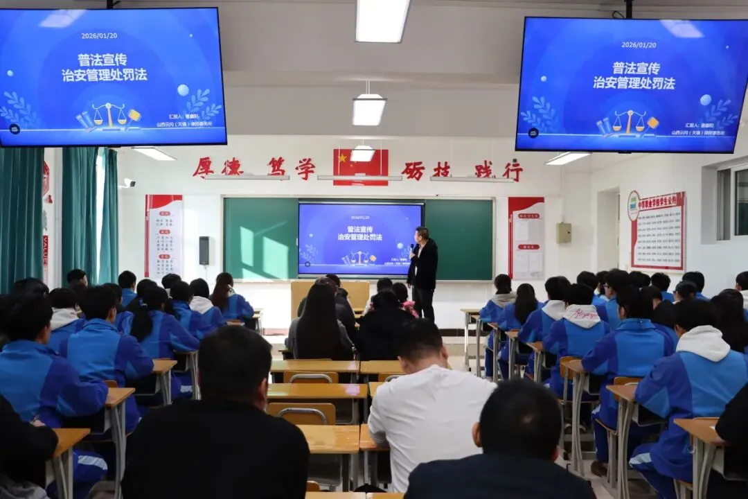 近日,山西云冈律师事务所曹鑫阳律师受邀为大同市职业教育中心学校进行“新法入校 护航成长”普法宣传,宣传会上,曹律师就新颁布实施的治安管理处罚法,为同学们带来了一场别开生面的“法治第一课”。