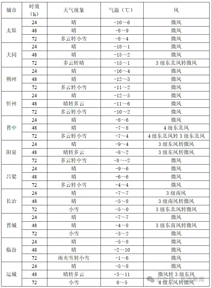 全省以晴天为主,气温方面,白天最高温差异明显:北部和中南部山区在0到5℃之间,中南部其余地方能达到5到9℃;夜间高寒地带最低温能到零下21℃左右,北中部和南部山区在零下17℃到零下8℃,早晚温差大。