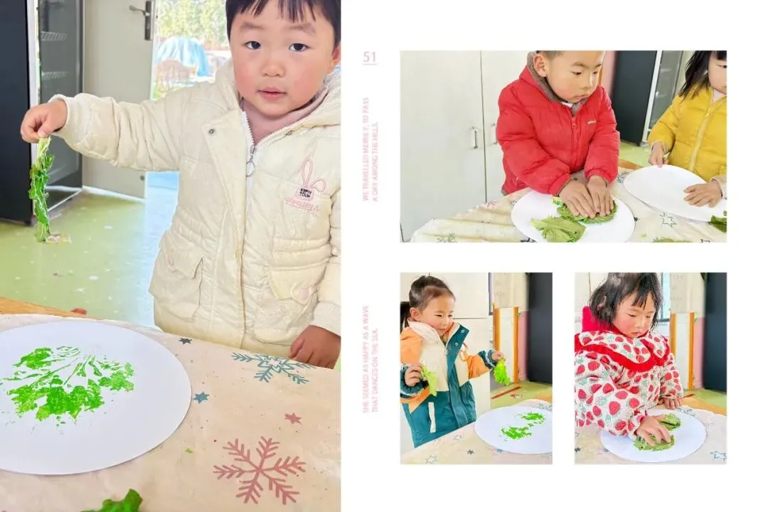 鼓励幼儿利用生菜进行创意绘画、手工制作等艺术活动,培养创造力和想象力。