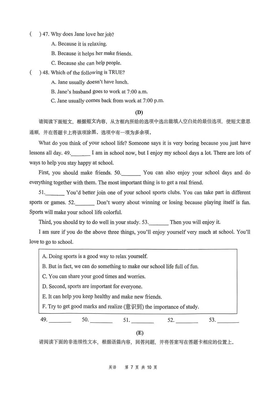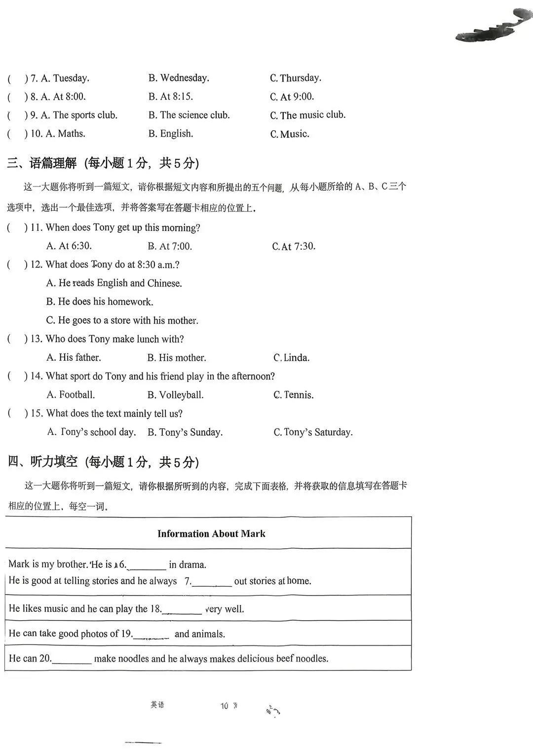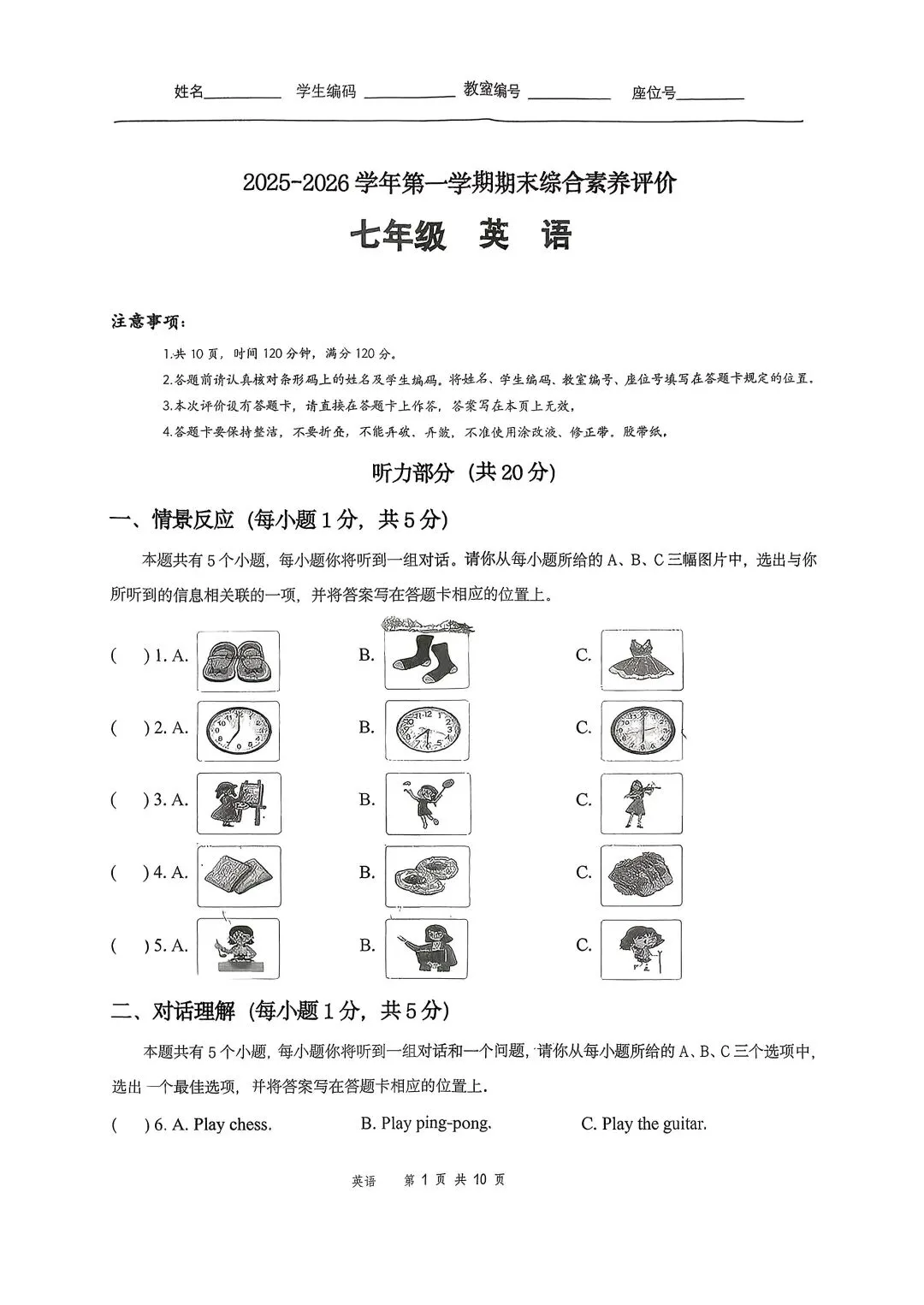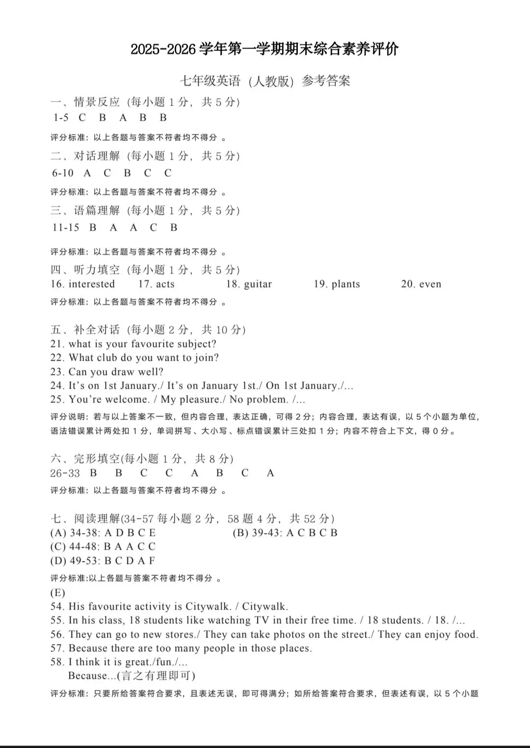 大同一中七年级2025-2026学年第一学期期末英语试卷及答案