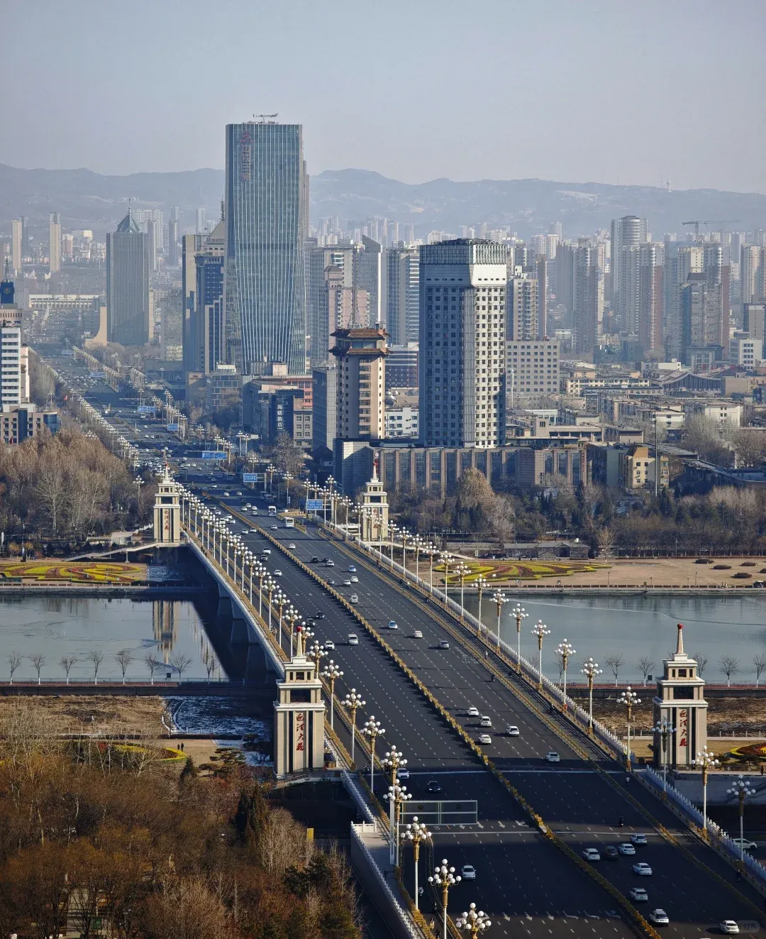 汾河南岸拍桥,清晨顺光,水面能出纹。