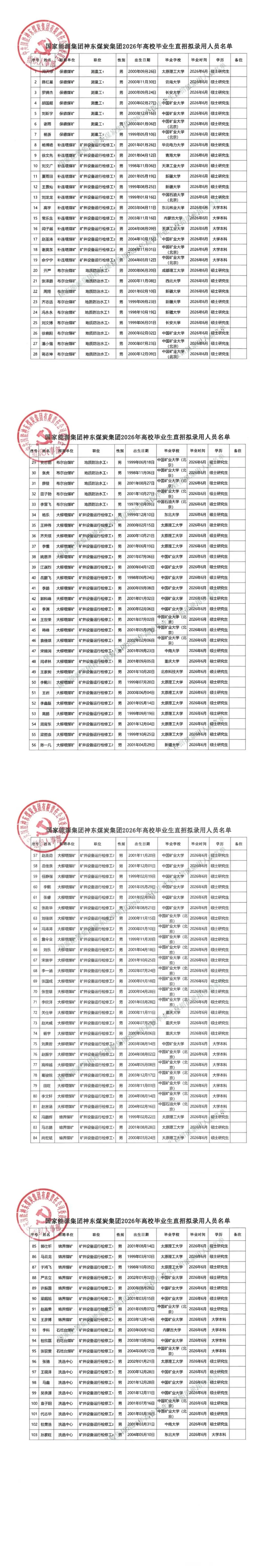 神东煤炭公司网站可以正常显示了,拟录用共103人。