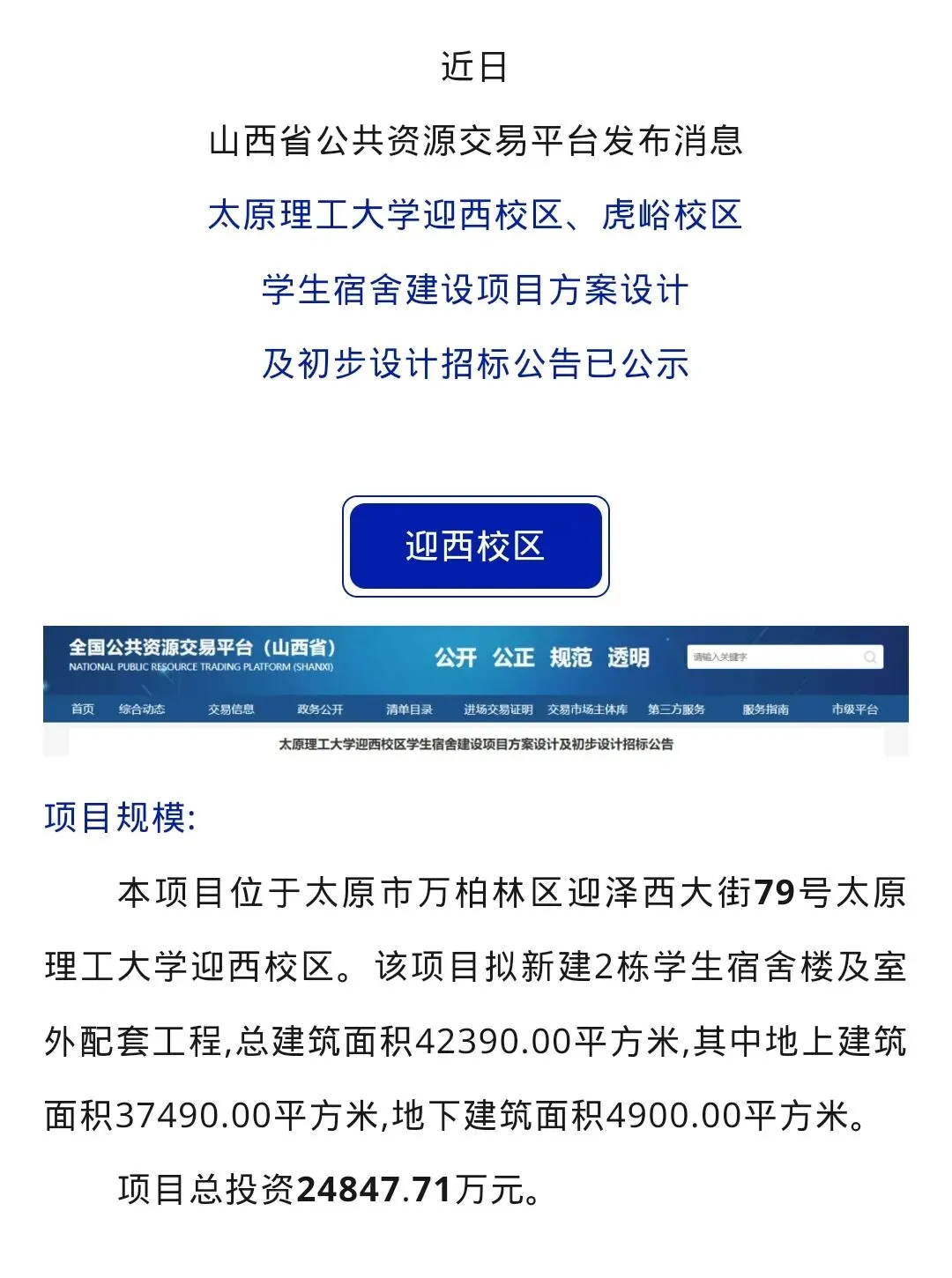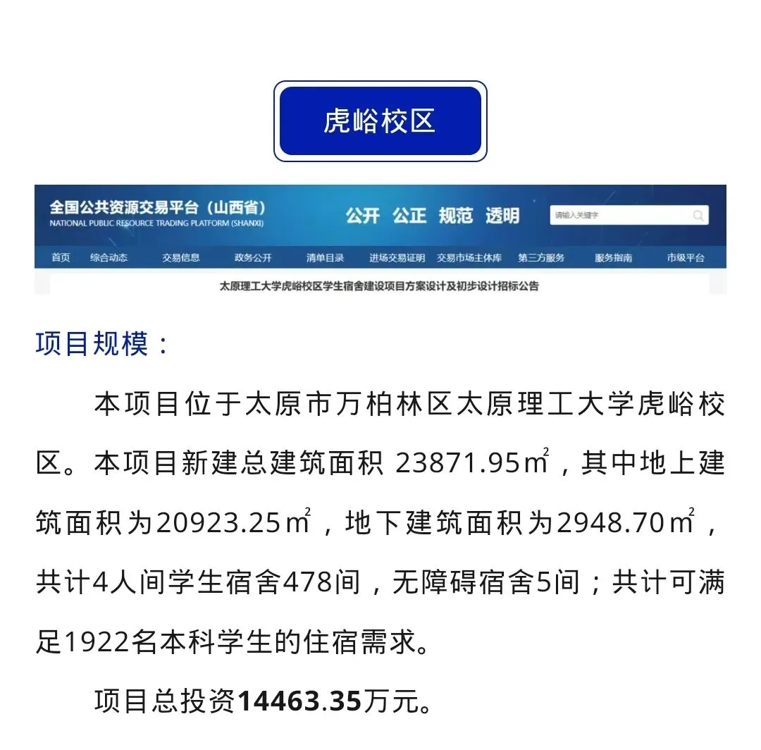 >太原理工大学迎西校区、虎峪校区学生宿舍建设项目来了
