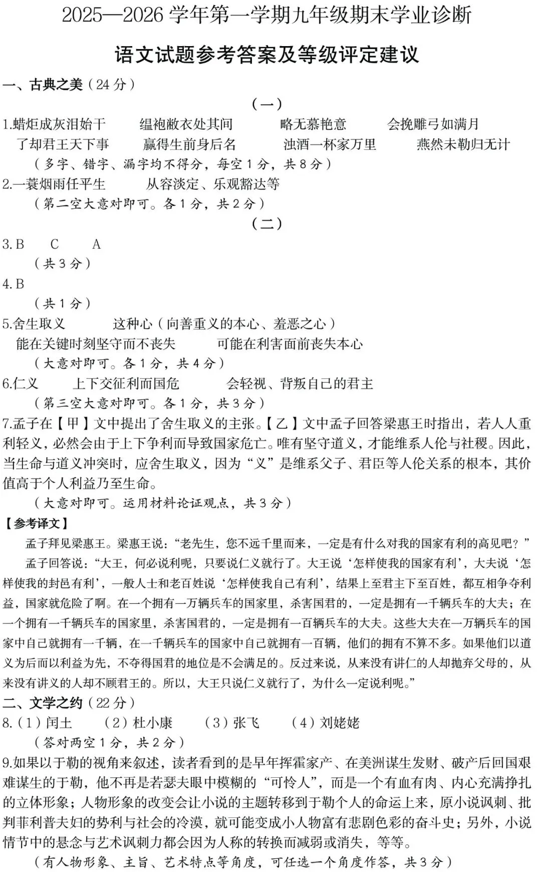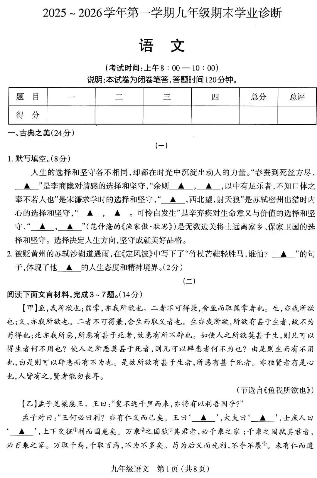 太原市2025-2026上学期期末|九年级语文