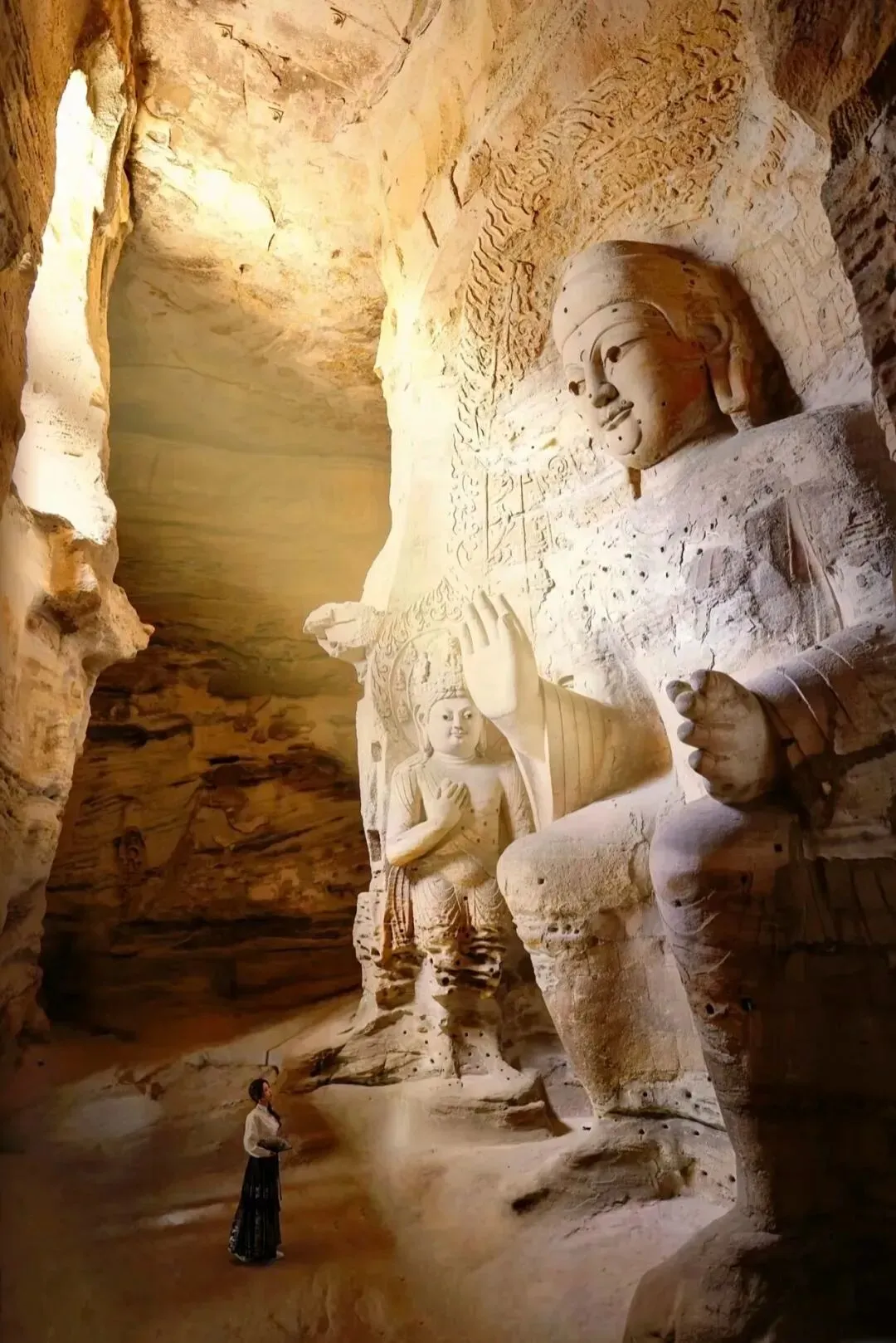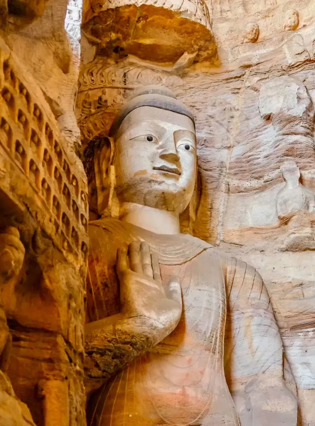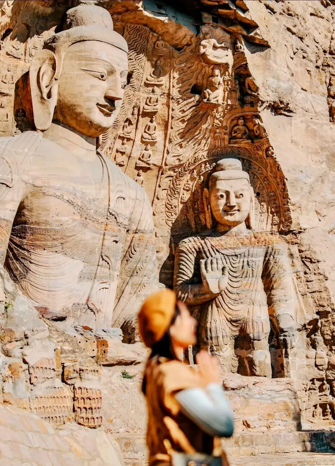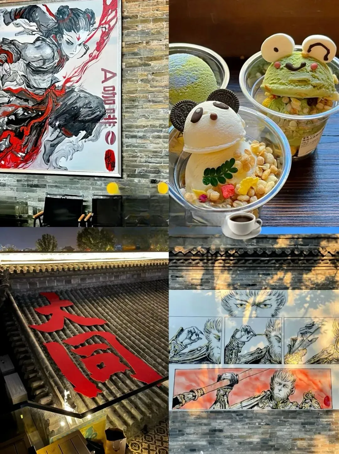 大同因为《黑神话悟空》火出圈,它是一座承载着深厚文化底蕴和历史痕迹的城市,走进大同就仿佛翻开一本厚重的历史书籍每一页都散发着古老的气息!大同·古城夜景 我的城市-大同 夜晚的古城真的好美,真的好爱好爱这座城,每次来都有不一样的感受。华严寺|海内孤品,辽金巨刹;存辽金时期最大的佛殿之一。殿身东向,大殿面阔九间,进深五间,单体建筑面积达1559 平方米,矗立在4米余高的月台上,顶部覆盖筒瓦,黄、绿色琉璃瓦剪边。大雄宝殿上的匾额“大雄宝殿”和“调御丈夫”均为明代原物,作者为明代总兵马林。“大雄”和“调御丈夫”都是释迦牟尼佛的尊称。“慈悲之华,必结庄严之果”善化寺俗称南寺,大门是落成于金代初年的大型官式建筑,是现存最古老的金代建筑之一,更是我国屈指可数的殿堂式木构建筑,免门票,景区门口预约凭预约码进去即可,寺内主要参观为天王殿、三圣殿、大雄宝殿、普贤阁,◆大雄宝殿,辽金建筑,内有五方佛从东到西依次为东方阿閟佛、南方宝生佛、中央毗卢遮那佛、西方阿弥陀佛、北方不空成就佛。◆山门四大天王,在天王殿是明代塑像,天王的“表情包”太有意思了特别逗。善化寺善化寺的“佑见善化”咖啡,点一杯“随缘·盲盒”咖啡,盲盒咖啡是什么最终决定于你抽到的签是什么,这个签还能带走,在善化寺感受那份古朴与庄重,是否觉得悟空也曾在此寻求庇护,庇佑一方安宁? 快来大同,与悟空一同游历这些古迹,用镜头记录下每一个震撼的瞬间,让这段旅程成为你心中永恒的回忆!#东南邑历史文化街区 大同东南邑|邂逅古城之美,随便在一个小店门口坐下,享受片刻的宁静。阳光透过窗户洒在身上,暖暖的,让人心情格外舒畅,大同东南邑,一个充满魅力的地方。无论是白天还是夜晚,每一来都有新内容,都值得你来打卡。各位天命人快去打卡吧~云冈石窟 云冈石窟是当时统治北中国的北魏皇室集中全国技艺和人力、物力所雕凿,是我国四大石窟之一。景区分为景观区和石窟群,其中石窟群是最大的看点,分为三个区域,第三窟是云冈最大的石窟,第五六窟为双窟,窟内壁画精美绝伦,是云冈石窟中最有代表的石窟。景区内还有石窟博物馆,展出石窟残件,可以了解石窟的历史。云冈石窟依山而凿,东西绵延约一公里,气势恢弘,内容丰富。现存主要洞窟45个,大小窟龛252个,造像5万1千余尊,代表了公元5至6世纪时中国杰出的佛教石窟艺术。其中的昙曜五窟,布局设计严谨统一,是中国佛教艺术第一个时期的经典杰作。景区分为景观区和石窟群,其中石窟群是最大的看点,分为三个区域,目前对外开放的洞窟大约40个。第三窟是云冈最大的石窟,第五六窟为双窟,窟内壁画精美绝伦,是云冈石窟中最有代表的石窟。景区内还有石窟博物馆,展出石窟残件,可以了解石窟的历史。悬空寺大同文创雪糕真的有点东西,“石屏千仞立,古寺半空悬,现存建筑是明清修缮的。登临要排队缓慢的向上,栈道很窄,上为木栈道,下为石栈道,属于全木质榫卯结构,并不是靠几十根木柱支撑,而是以插入岩壁的横梁为基础,同时与回廊栏杆上下梁柱形成框架式结构,这就是千年不倒的秘密,悬空寺木梯上的莲花图案,寓意"步步登莲,吉祥如意"也是古诗一绝,也是罕见的佛、道、儒三教合一的寺庙。上延霄客,下绝嚣浮”,当你亲眼目睹悬空寺的那一刻,你才会真切感受到这是怎样一种超凡脱俗的存在。它宛如一座天上宫阙,遗世独立于尘器浮华之上在悠远岁月中散发着神秘而迷人的气息。#北岳恒山中国名山首推五岳。五岳是远古山神崇拜、五行观念和帝王封禅相结合的产物,它们以象征中华民族的高大形象而名闻天下。
