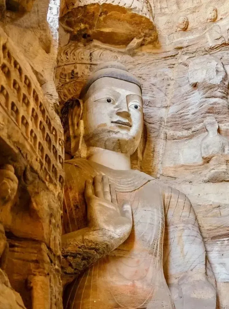 云冈石窟依山而凿,东西绵延约一公里,气势恢弘,内容丰富。现存主要洞窟45个,大小窟龛252个,造像5万1千余尊,代表了公元5至6世纪时中国杰出的佛教石窟艺术。其中的昙曜五窟,布局设计严谨统一,是中国佛教艺术第一个时期的经典杰作。