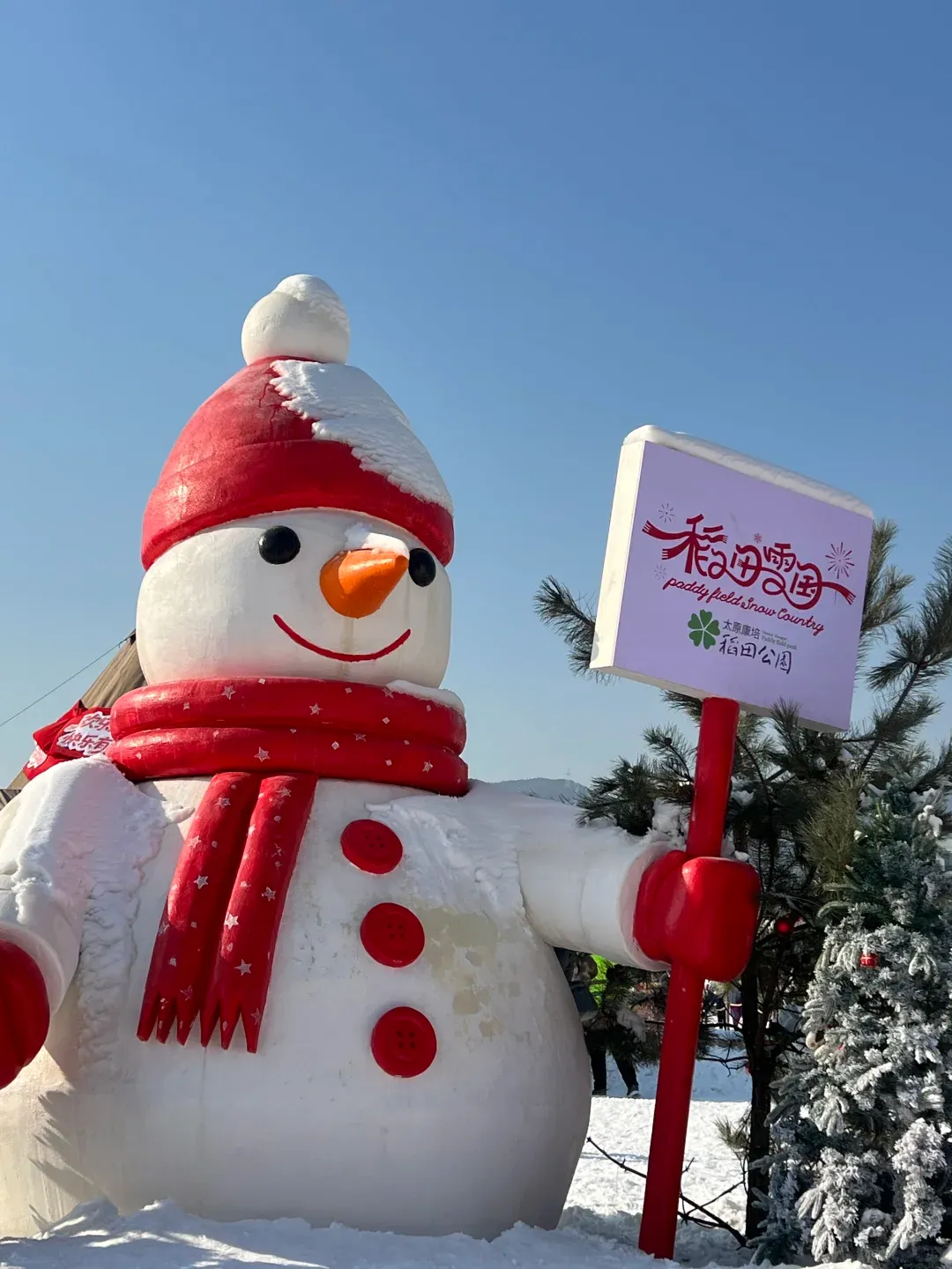 稻田公园的稻田雪国 5 万平米的超大雪场,13 米高的吉祥树超震撼,50 多种项目一票通玩,S 型雪道超刺激,冰面碰碰车、旋转木马孩子玩到不想走,累了还能烤棉花糖吃。