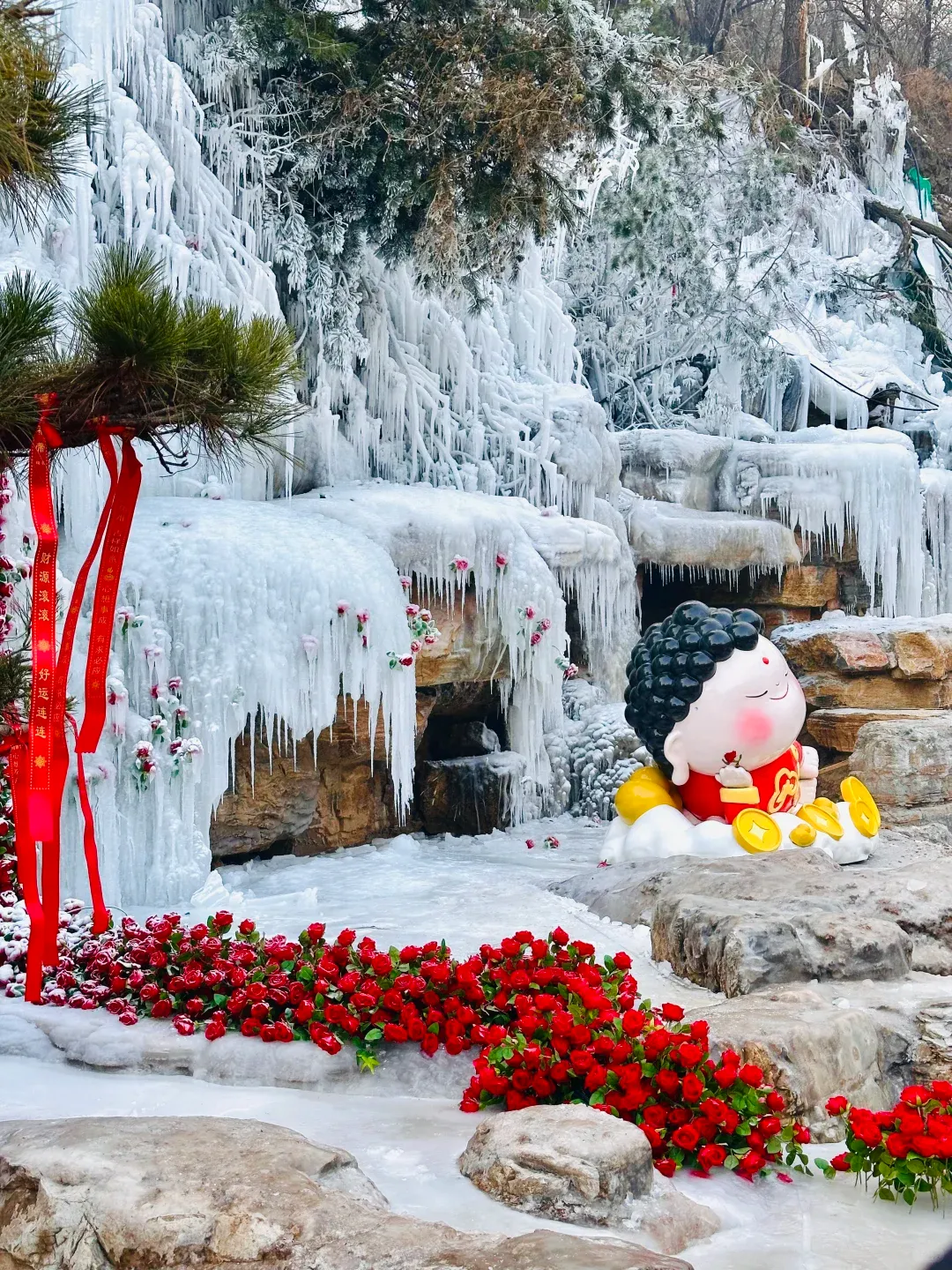 蒙山玫瑰冰瀑,冰封的娇艳配上山间怪石,氛围感拉满了!快带你另一半来体验冬日限定浪漫吧!