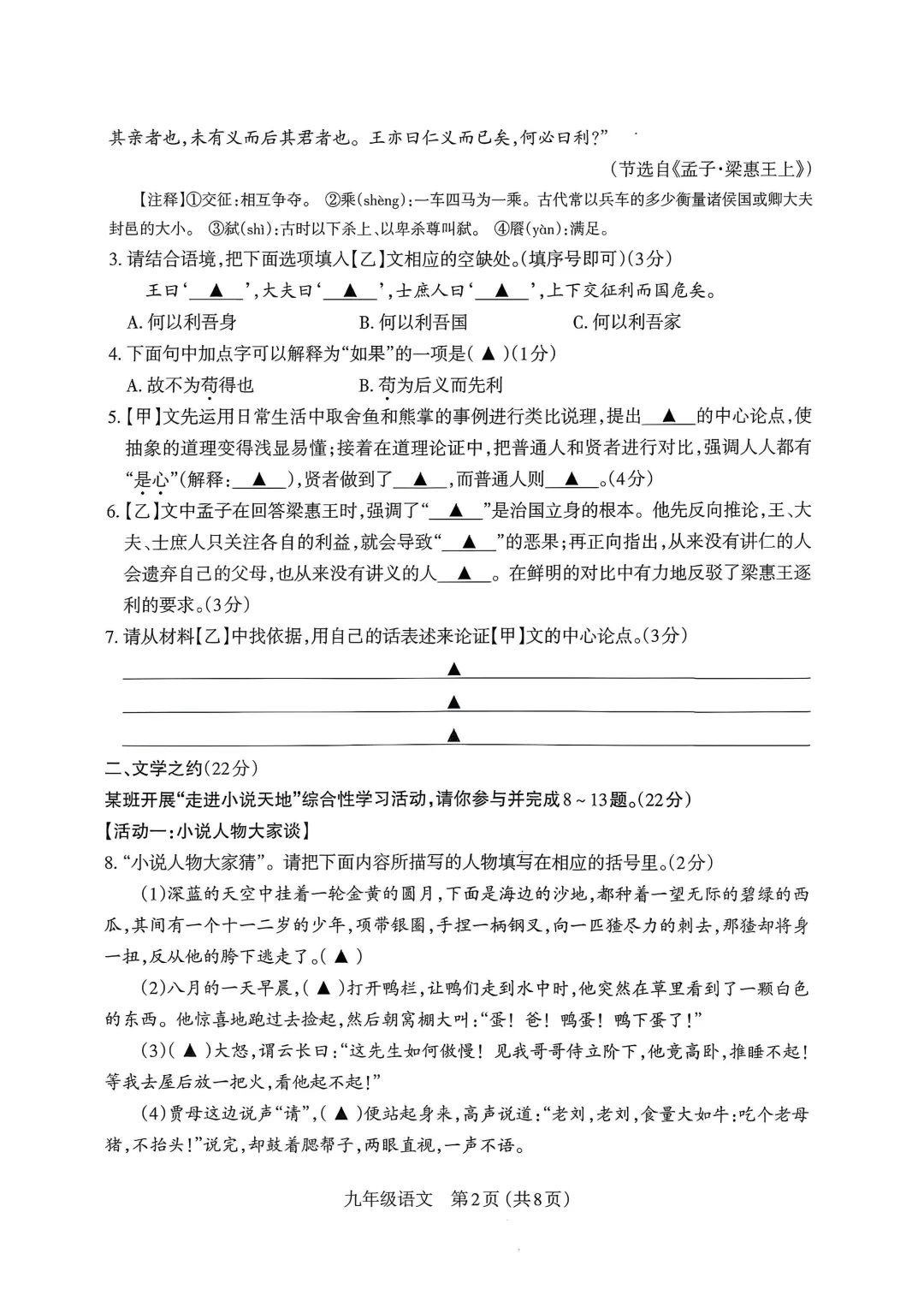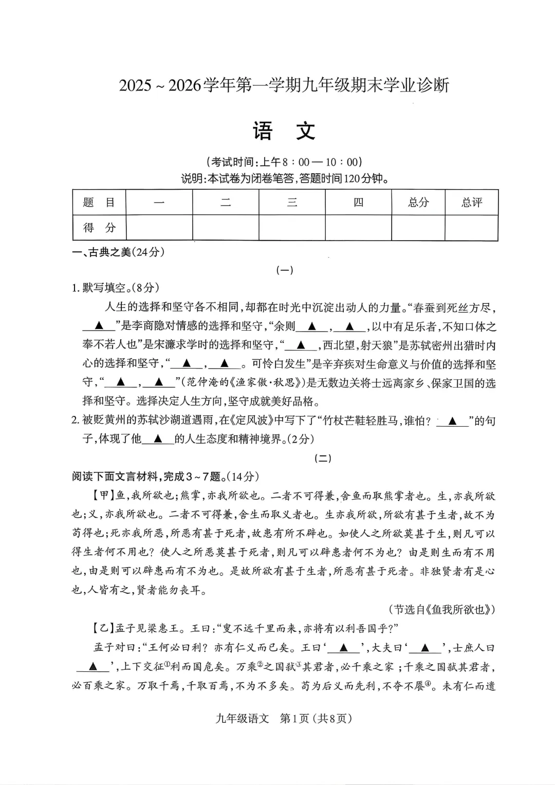 太原期末•4科含答案 | 2025-2026学年第一学期九年级期末学业诊断卷