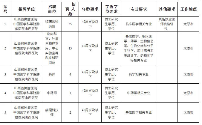 信息来源:山西省人力资源和社会保障厅官网用人单位:山西省肿瘤医院单位性质:三甲医院招聘岗位:药学5名、医师等报名方式:线上报名报名地址:sxszlyyrskzp@163.com报名时间:2026年1月至2026年12月