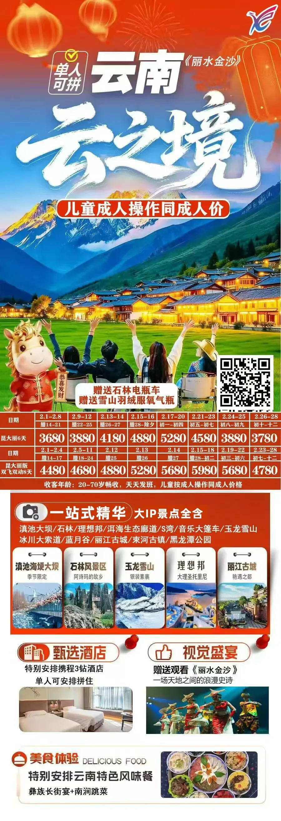 >2026春节2月太原到云南亲子游推荐产品|昆大丽6日游|昆大丽版8日游|昆大丽香8日游